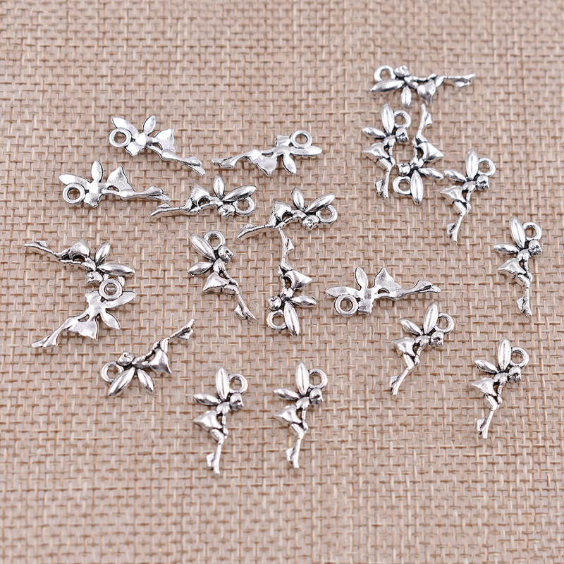 60pcs Alloy Tiny Fairy Pendants Necklace Bracelet Jewelry DIY Making Silver