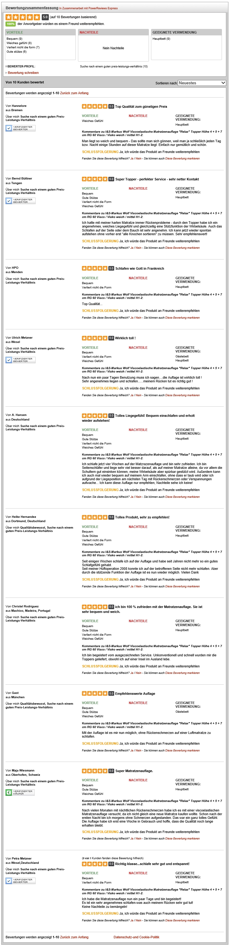 Esto es lo que dicen los clientes que ya tienen nuestros Tops Visco Mattressen: