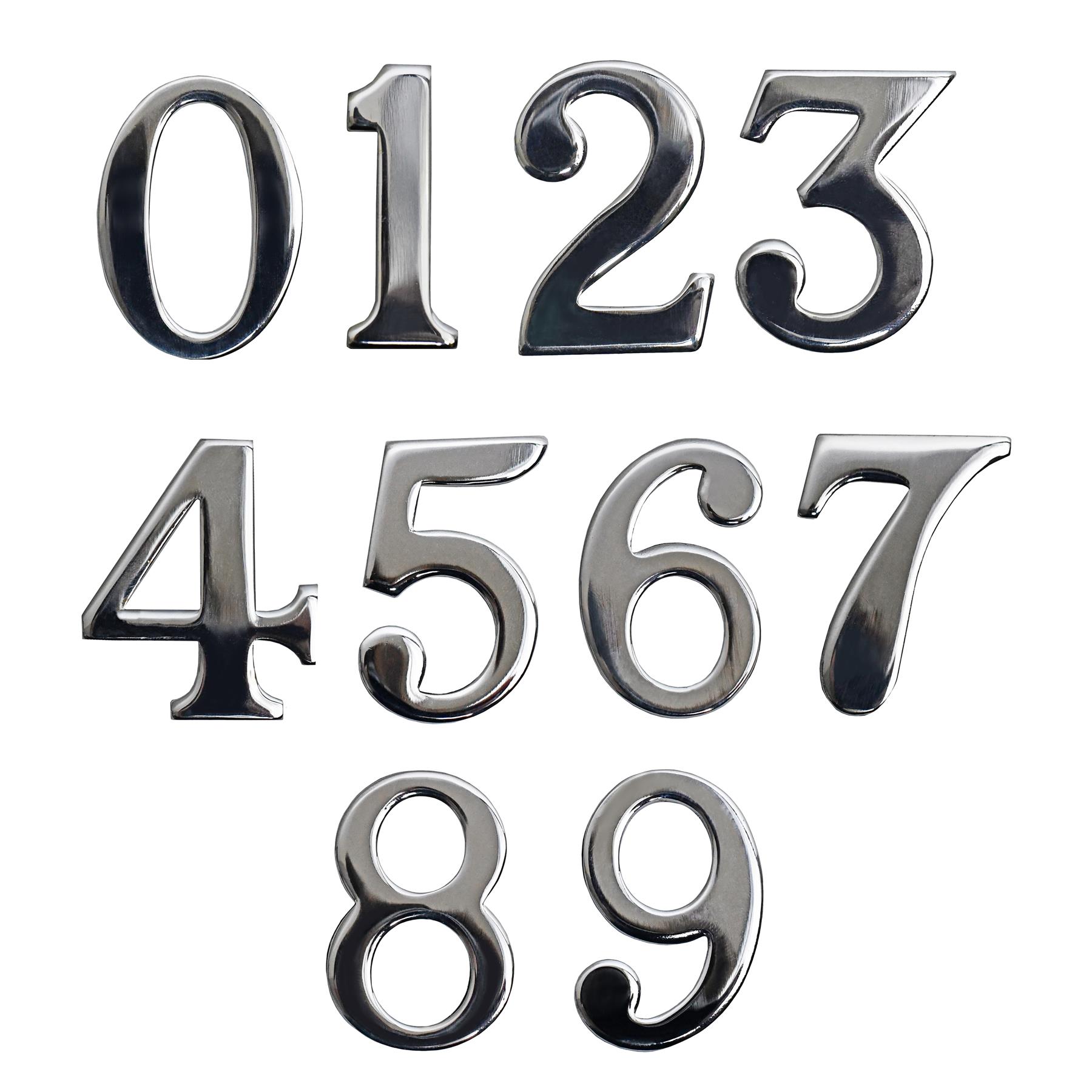 38mm / 1.5" - Classic Bright Chrome Adhesive Numerals 0 - 9