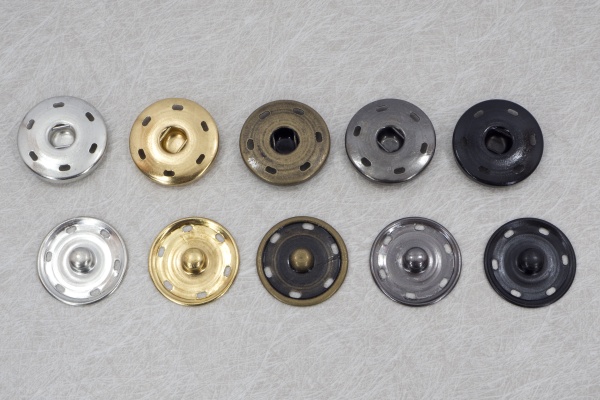 Große, rostfreie Druckknöpfe mit Löchern zum Annähen.
