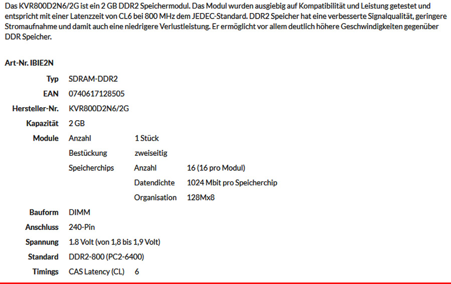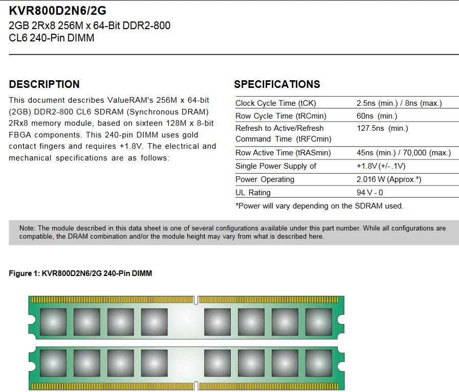 2 GBModulo a bassaprofilo (E) Kingston KVR800D2N6-2G |