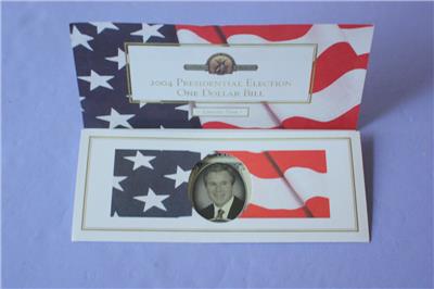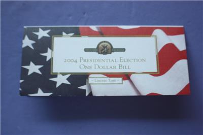 Here are nice collection of the United States 2004 Presidential Election George W. Bush Colorized $1 Uncirculated Banknote Bill in a folder.