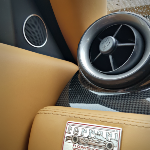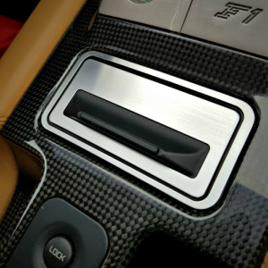 Die Blende ist sehr aufwendig hergestellt und einzigartig für den F599. Die Zierblende besteht aus hochwertigem Aluminium und wird in Handarbeit als Einzelanfertigung hergestellt. Die Oberfläche fügt sich optimal ein und sorgt für ein edles Gesamtbild. Sie sind bereits mit einer speziellen Klebefläche versehen. Vorhandene Gebrauchsspuren und Beschädigungen werden hiermit kostengünstig abgedeckt und werten den Innenraum dazu noch auf.