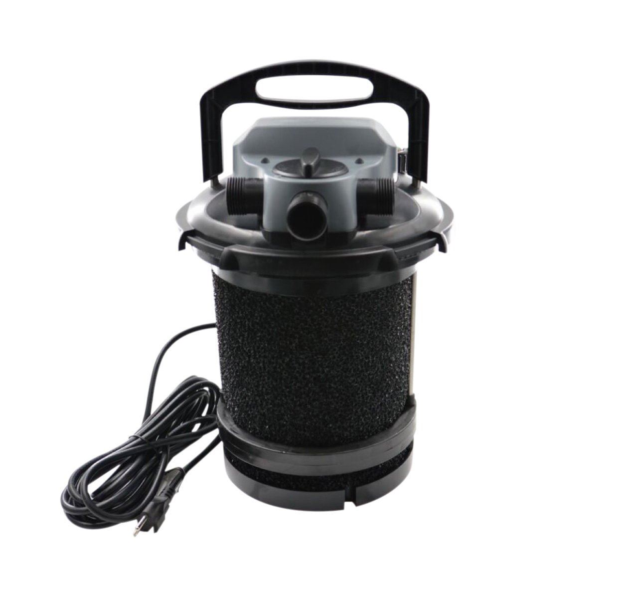 STAGE 3 - Finally as the water is passed upward through the centre of the filter, it passes over a UV clarifier where the UV lamp (included) kills the algae which causes green water, before being returned to the pond.