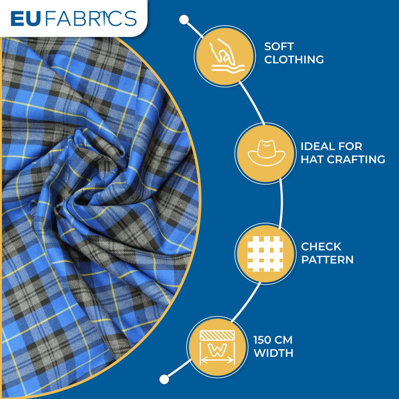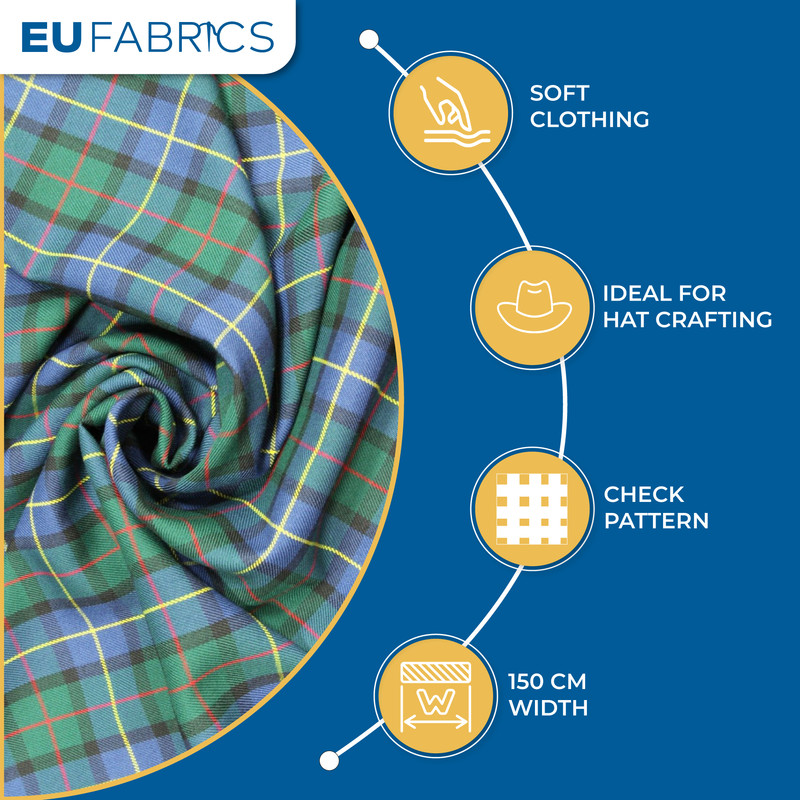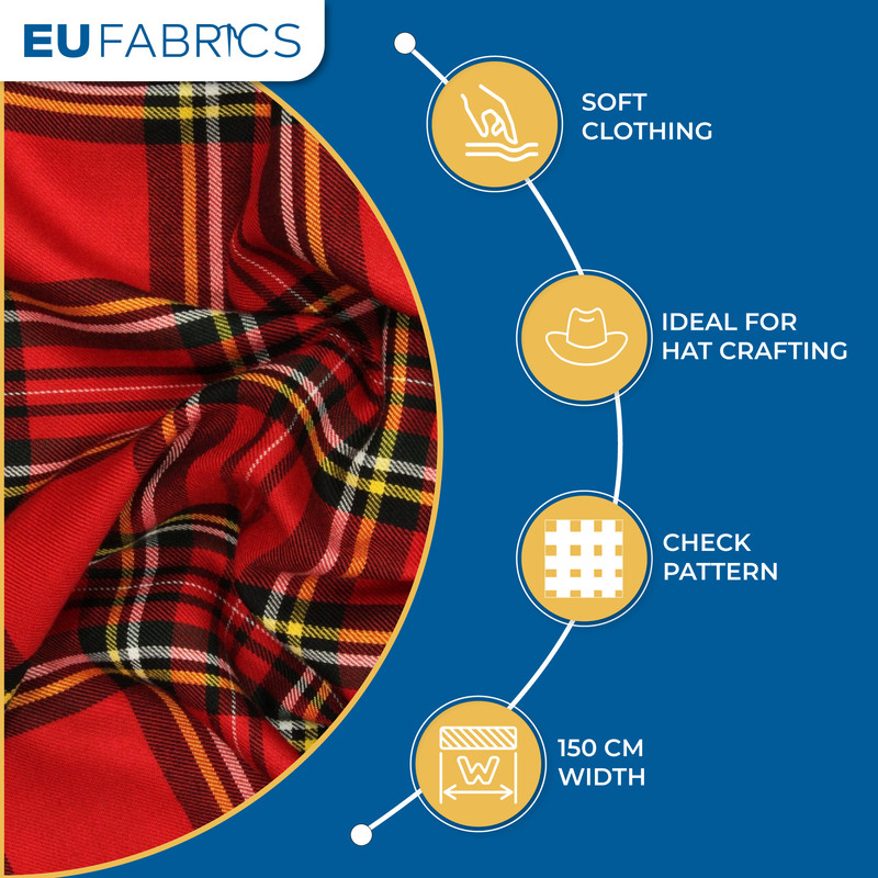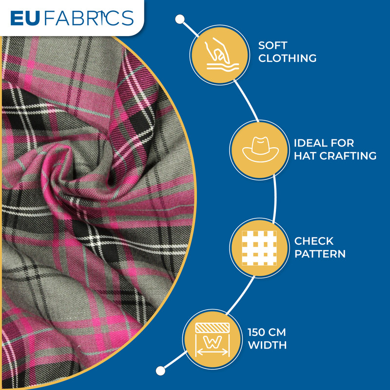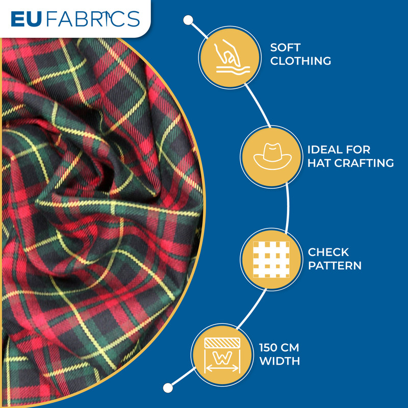 Check Pattern: The fabric features a classic tartan check pattern, adding a timeless and stylish aesthetic to your projects.