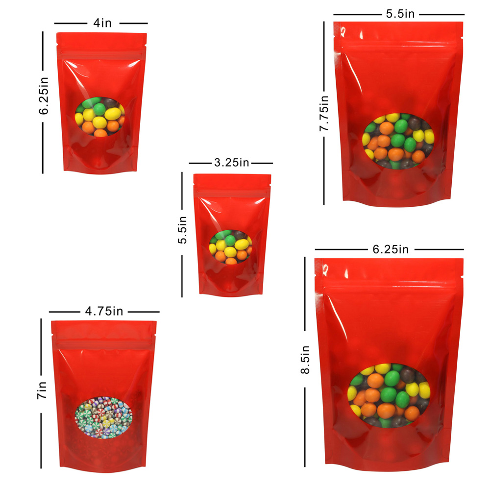 Multi-Color & Size Glossy Mylar Stand up Zip Lock Bag w/ Round Window M51