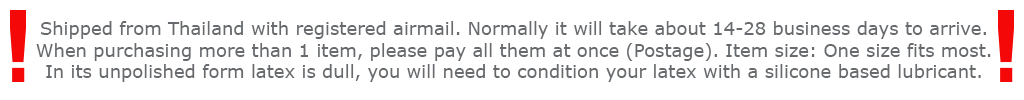 Latex Bikini Bottoms Panties from Lequida. Made from 100% natural latex. Latex thickness is approx. 0.5 mm - 0.6 mm. This is a brand new item and it will likely be covered by talcum powder, it comes with care instruction leaflet.