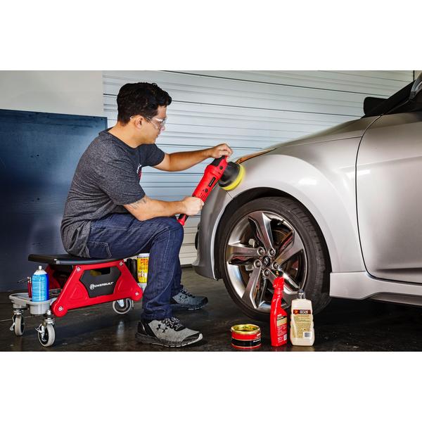 The Powerbuilt 6 inch orbital polisher offers construction and performance that professional detailers demand and car buffs appreciate. It all starts with the long throw 21mm pad orbit. It covers more ground and does more work per pass than lesser orbital polishers. The powerful 840-watt motor is controlled by an electronic module that delivers forced rotation and consistent speed regardless of pad pressure. Six settings from 2100 to 5000 max OPM give you the control you need for spectacular results with less elbow grease. The motor delivers smooth power thanks to precision counter-balancing. The composite body reduces weight while the rubber palm and handgrips reduce vibration and increase control. Use the included side handle on either side for even more control when needed. The vented flexible backing pad accepts all standard 6-inch pads. A generous 10-foot power cord makes it easier to move around your vehicle.