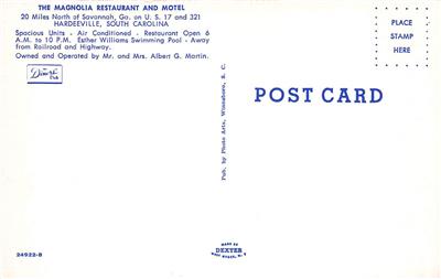 Hardeeville SC The Magnolia Restaurant & Motel Located on U.S.17, Postcard?.?