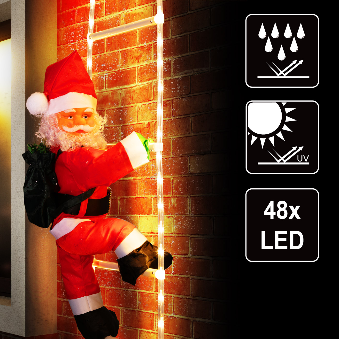 Mit Schutzklasse IP44 ist der Weihnachtsmann auch spritzwassergeschützt und so sowohl für den Innen- als auch für den Außenbereich geeignet.