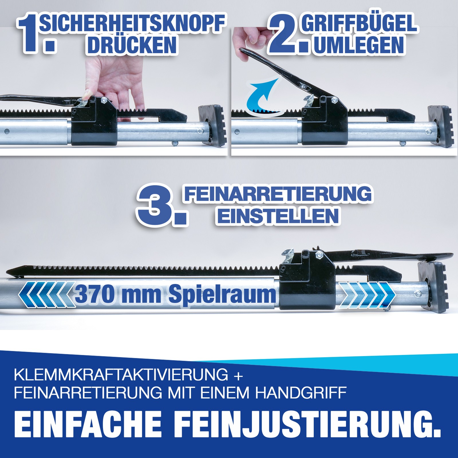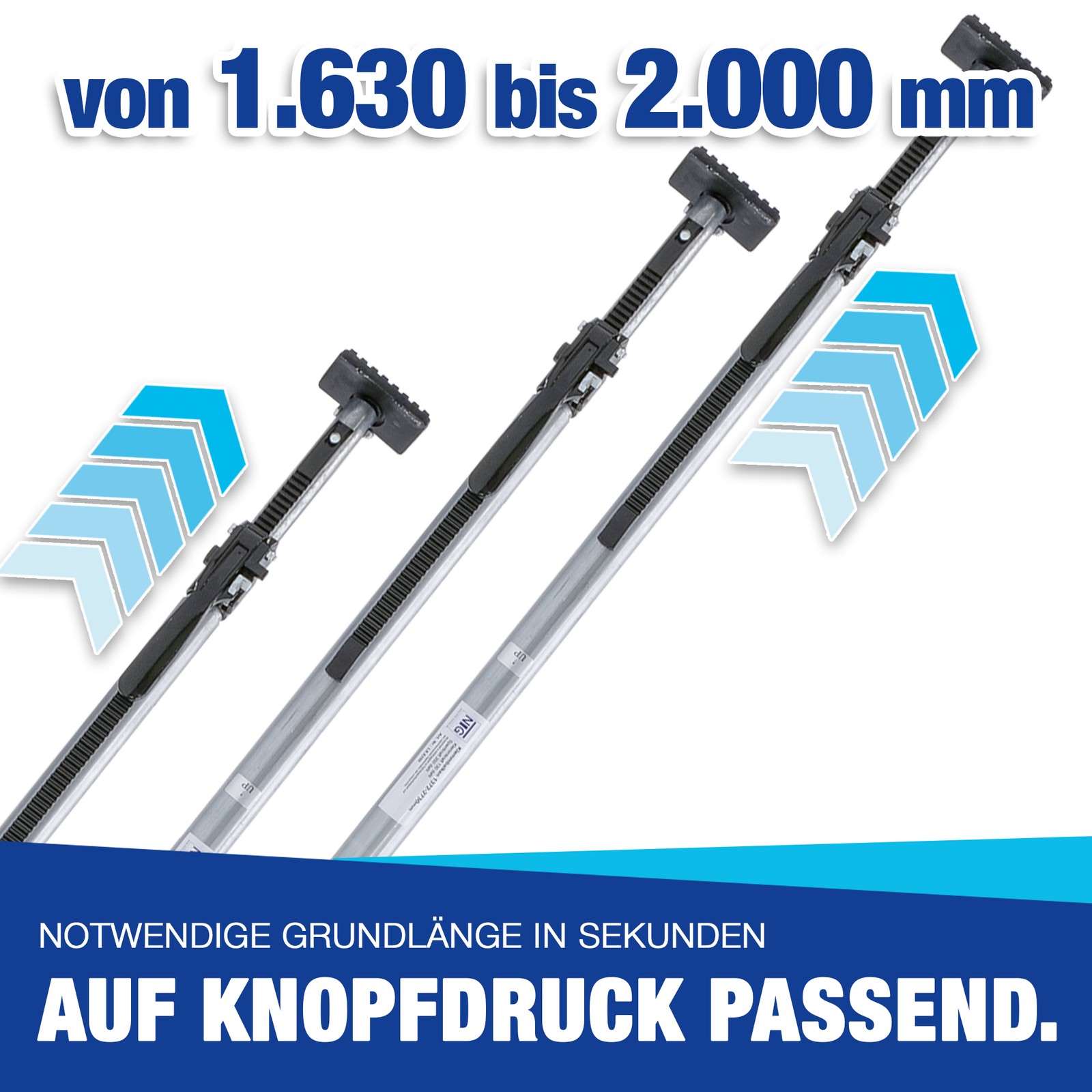 Dank des stufenlosen Verstellbereichs passen sich die Sperrbalken flexibel an verschiedene Ladebreiten an. Die robusten Aluminium-Profile mit rutschfesten Gummifüßen garantieren festen Halt, sind leicht im Gewicht und langlebig – ideal für den täglichen Einsatz in Transportern, LKW und Anhängern.