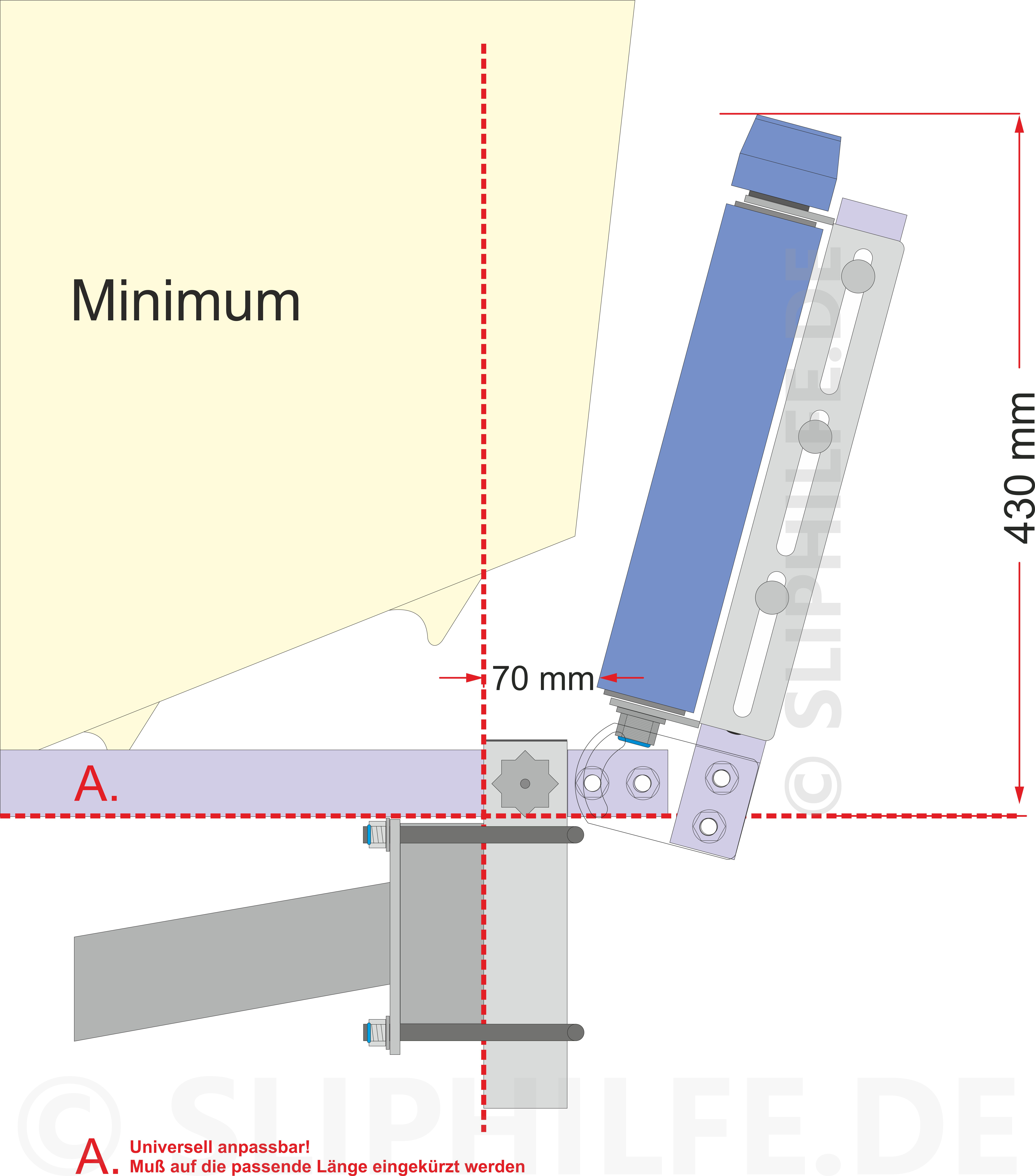 |   A. Die Schubstütze 40x40 mm ist universell in der Länge anpassbar (je nach Bootsrumpf) Sie muß auf die passende Länge gekürzt werden *) Zu lange Stützen ragen evtl. zu weit in den Kielbereich hinein und müssen deshalb individuell angepasst werden