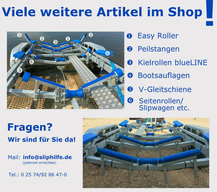 Perfekte Einfahrhilfe beim Slippen Schnell & Einfach Slippen! Die Peilstange erleichtert das Slippen - Keine Beschädigungen mehr am Bootsrumpf! Die Peilstange dient als zusätzliche seitliche Sliphilfe neben Kielrollen/Seitenrollen etc. Sie hilft beim Aufslippen das Boot automatisch auf die Trailermitte zu führen Insbesondere bei Seitenwind/Strömung eine deutliche Hilfe