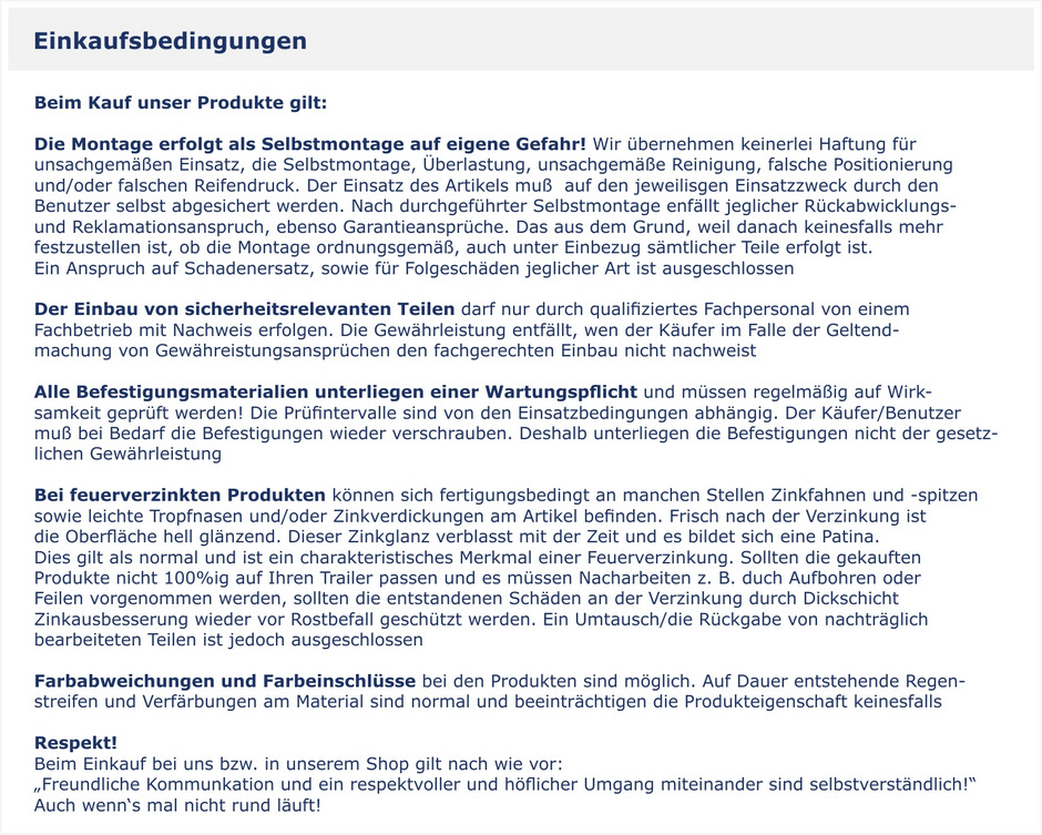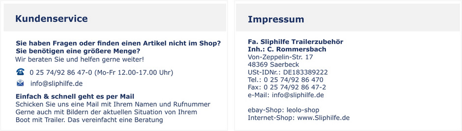 | gilt per Stück | Alle angegebenen Maße sind ca. Maße. Technische Änderungen vorbehalten | Passt der Artikel an meinen Bootstrailer? Bei Fragen stehen wir Ihnen gerne beratend zur Verfügung Rufen Sie uns an! |