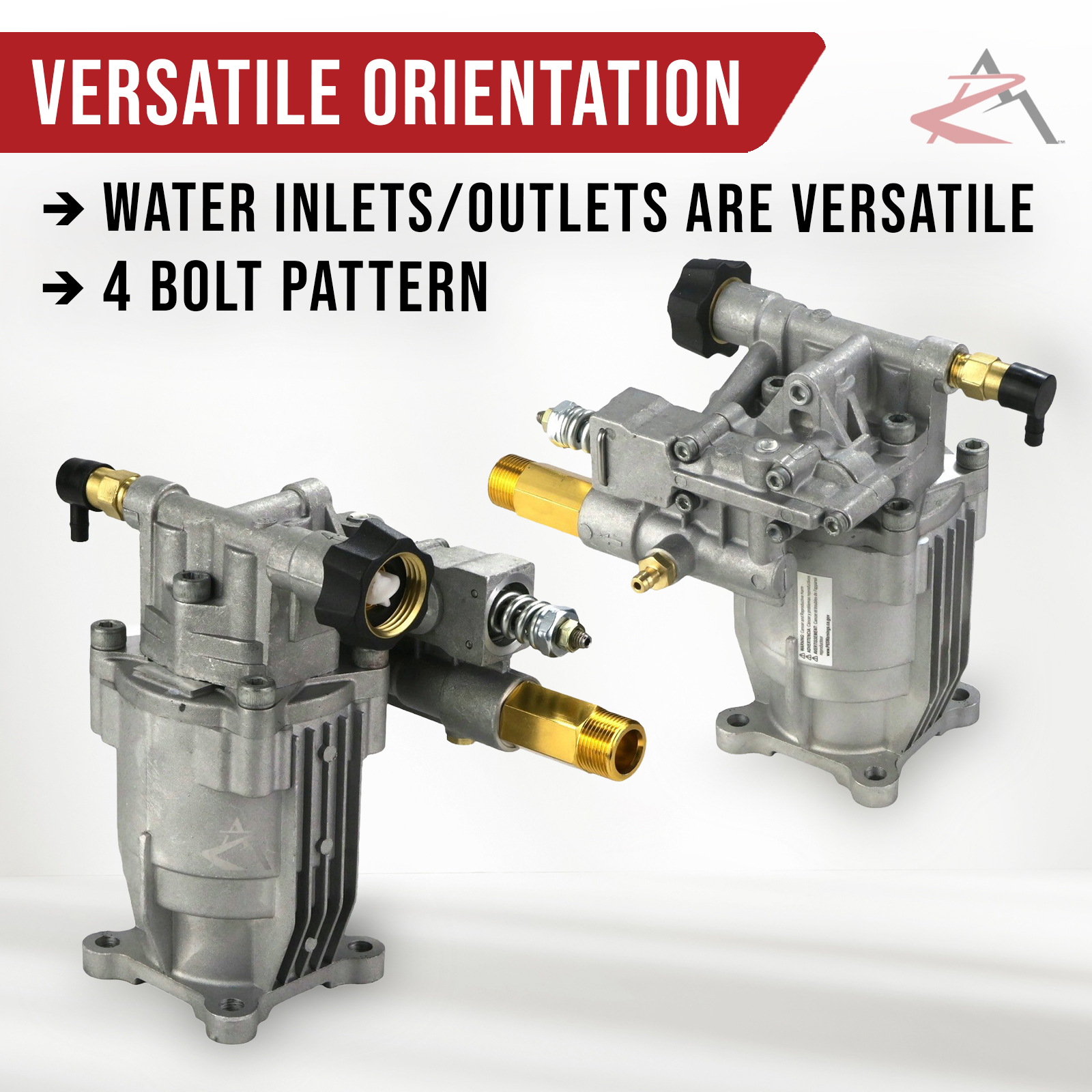 • This pump mounts horizontal and can face any direction that allows the hose connections to be accessible. Pump needs at least 6HP to handle PSI. Pump head CANNOT be flipped, but pump can be mounted in different directions