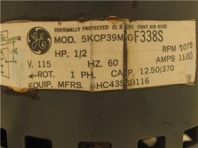 GE Motors 5KCP39MGF338S Blower Motor 1/2HP 1075RPM 115V 60Hz 11.00A 1PH