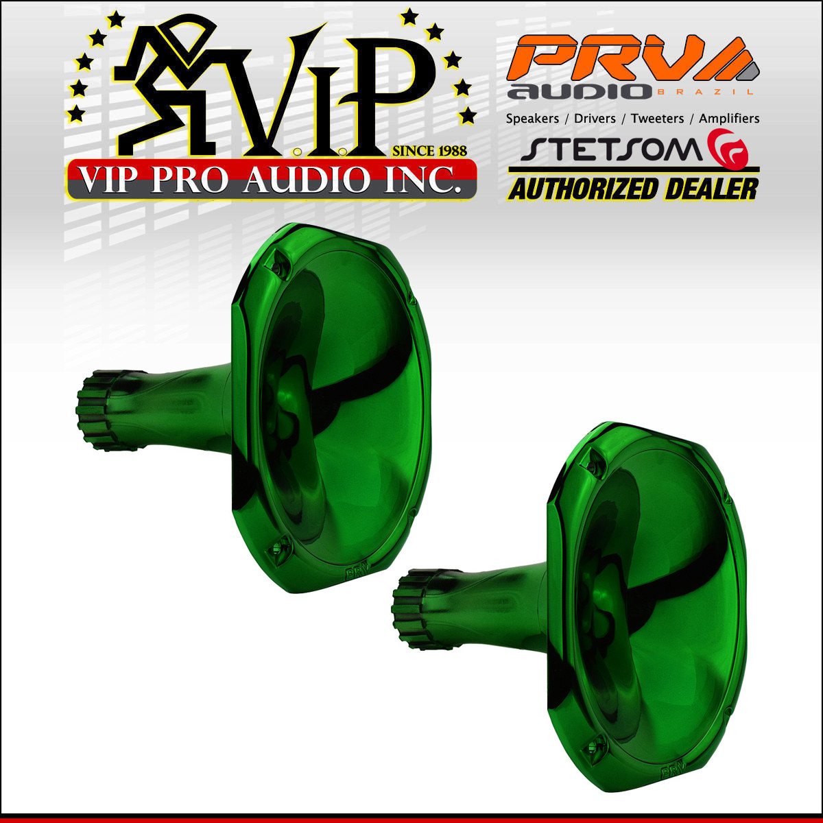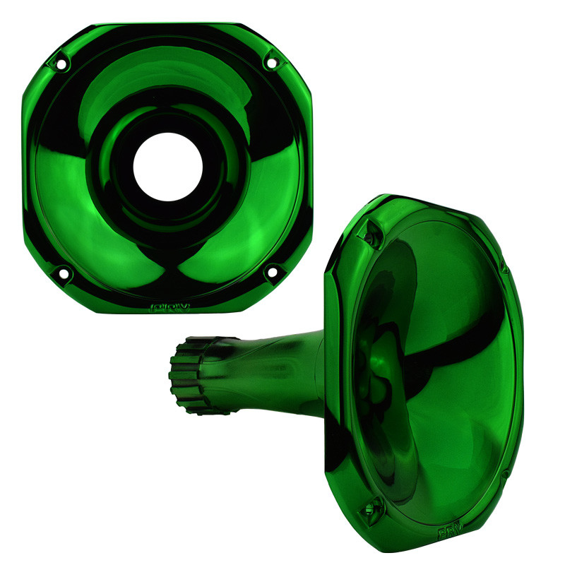 (2) PRV Audio WGP14-25 GREEN CR 1" Screw-On Short EXIT WAVEGUIDE 45 x 45 Horn 1-3/8 (PAIR) Contact Us For Information, Se Habla Espanol 718 272-7228 / 215 Conklin Ave. Brooklyn NY 11236 Authorized Dealer/ Brand New Item / In Stock! Overview: WGP14-25 GREEN CR Add a little color to your sound, in a good way, with PRV Audio's WGP14-25 Gold CR-S finished exponential horn. A standard 1-3/8"-18 TPI mount is compatible with most 1" compression drivers. This horn, constructed from non-resonant recycled plastic and finished in a UV resistant coating, is perfect for outdoor or automotive use. Specifications