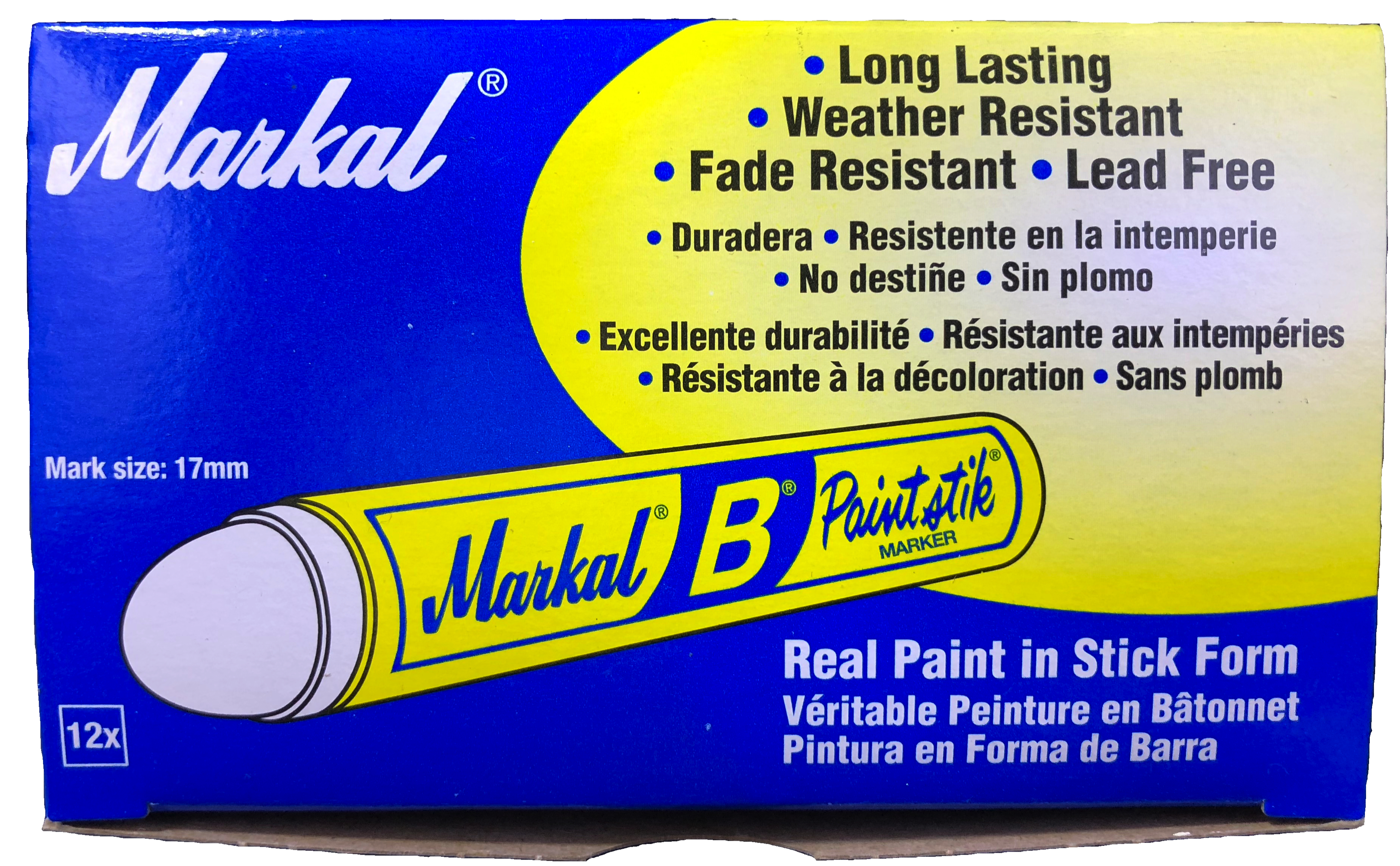 This is a single Gray Markal B Paintstick. The B Paintstick is Markal's most versatile and economic marker and combines the durability of paint in the convenience of a crayon. The lead free paint formula has superior marking performance on oily, icy, wet, dry or cold surfaces and is weather- and UV-resistant. This Paintstik works on rough, rusty, smooth, or dirty surfaces. Solid paint eliminates the need for replacement tips, sharpening or priming to help increase productivity. The style of this marker is commonly referred to as a Hobo Marker and is extremely popular with street and freight artists for their monikers.