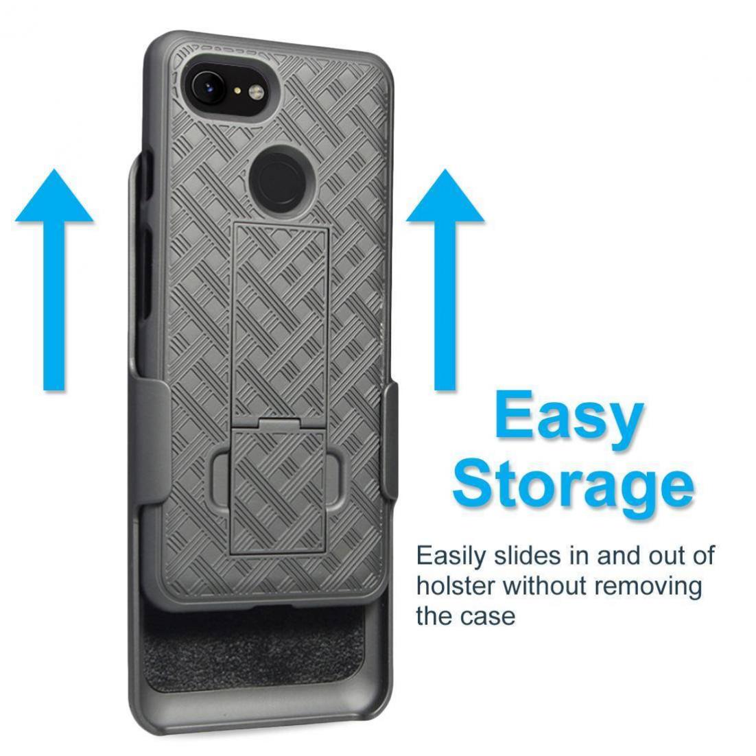 - 2-in-1 carrying Solution and unique slide-in design for ease of use for Google Pixel 3 (5.5 ). High quality shell holster case with anti slip grip design.