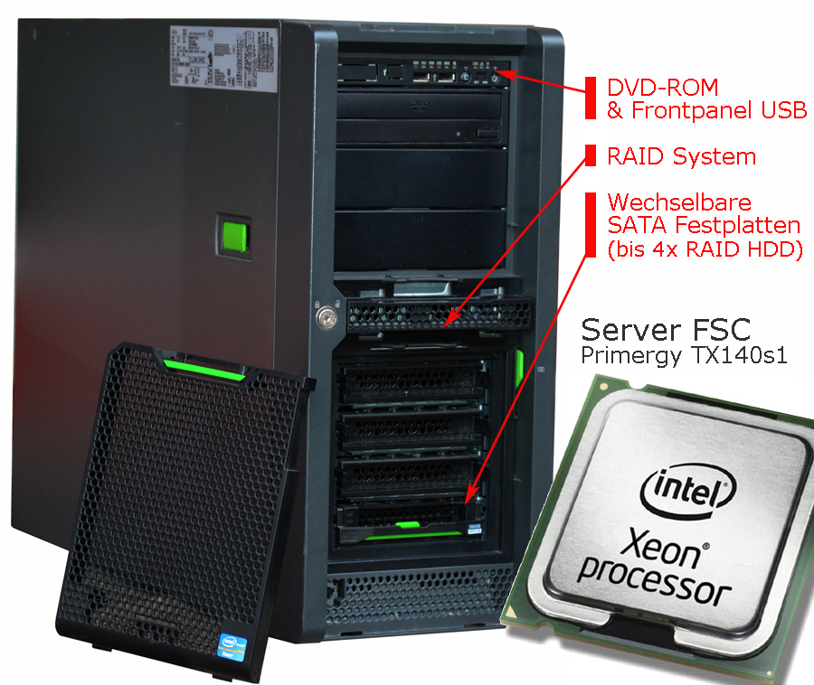 Lieferumfang: FSC Primergy TX140 S1 Server wie abgebildet und beschrieben,