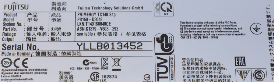 P/n des Servers: TX140 S1