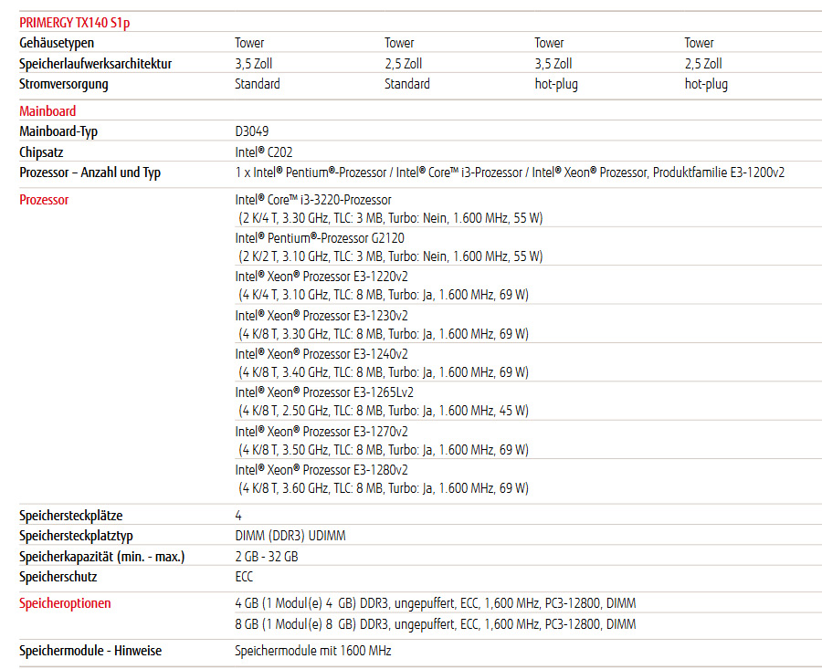 Andere Konfigurationen des Servers FSC TX140