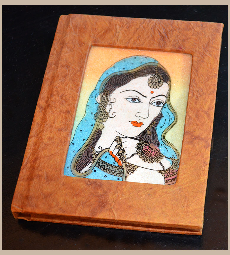 This unique address phone book, boasting of authentic Indian craftsmanship, can be an invaluable possession. The cover of the phone book has a gemstone painting of an Indian queen. The painting is done on the glass using precious and semiprecious gemstones. The painting is done by first sketching on a glass and then using real powdered gemstones for color. The address book is made out of 100% handmade paper. The local handmade paper is made from recycled cloth and waste paper. Inside of the address phone book has place to write email address too along with name, address, phone number.