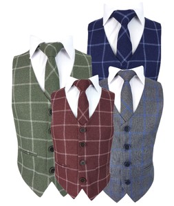 Kids Check Tweed Wedding Waistcoat Set Page Boys Formal Checkered Vest Outfit