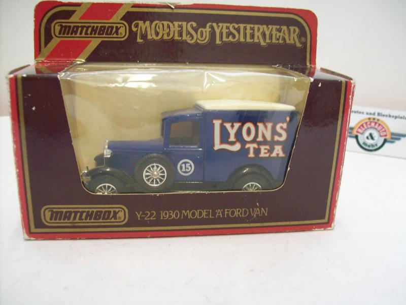 Modellauto Ford Model "A" Van "LYONS`TEA", 1930, blau, Matchbox Models of Yesteryear, Artikel Y-22, Maßstab 1:40, neu in Originalverpackung (Verpackung mit geringen Lagerschäden), OVP