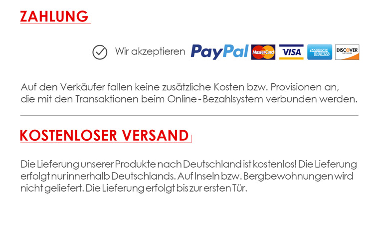 | Farbkombination | Die Farbauswahl können Sie aus unserer Bildergalerie entnehmen. Die Farben unserer Grafik können vom Original abweichen. |