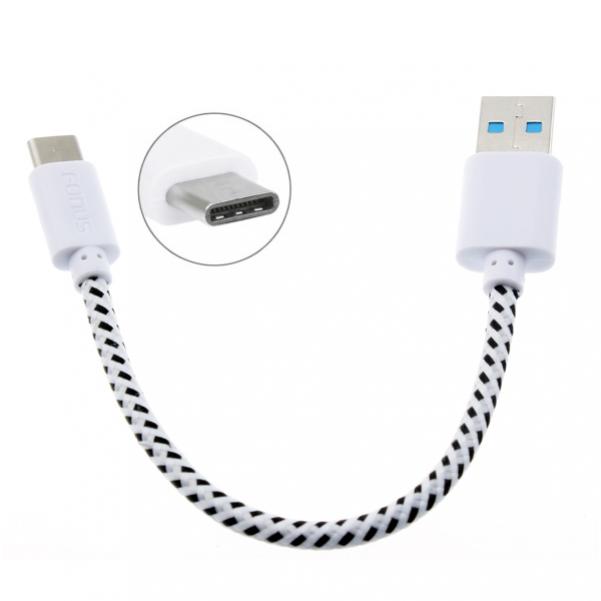 Braided Short Type-C Cable Rapid Charge USB Power Wire Sync USB-C Cord. This short cable is easy to carry, perfect for traveling, keeping it in the glove compartment, purse, desk, or anywhere else where you could ever need an extra cable to either sync or charge your cell phone or tablet with type-C USB connector. Quick transfer your data with USB port. Use the USB Cable to charge and sync your phone with your Windows PC. 7 inches, approximately 18cm.