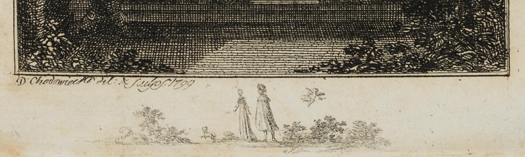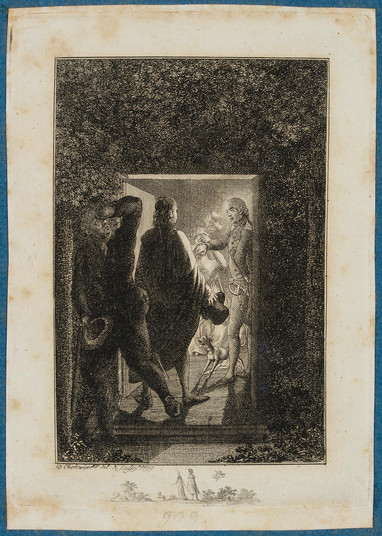 Daniel Nikolaus Chodowiecki (1726 Gdansk - 1801 Berlin), Hermann surprises Julchen and Prince Moritz, 1799, Etching