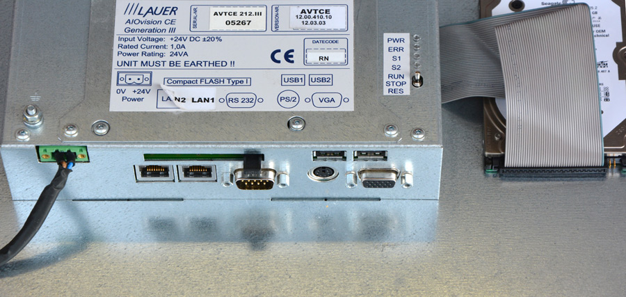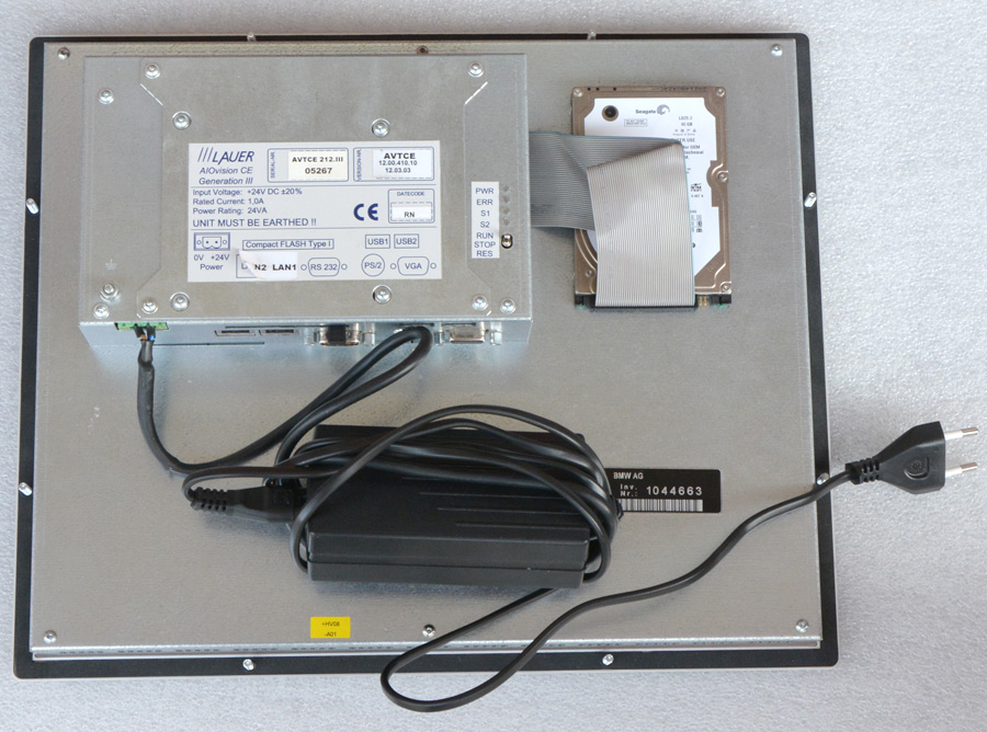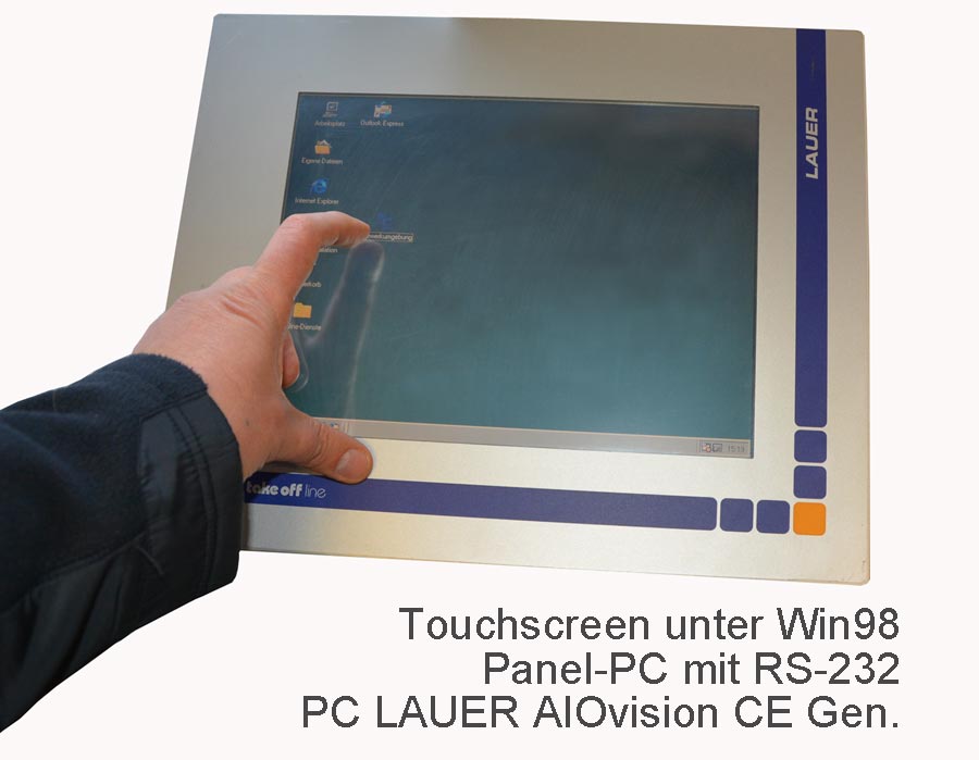 besteht aus einem Toutchscreen Display mit eingebautem Computer mit 300 MHz, Win 98 mit allen Treibern ist installiert, mit RS-232 Interface und PC104 (Industrie-Bus)