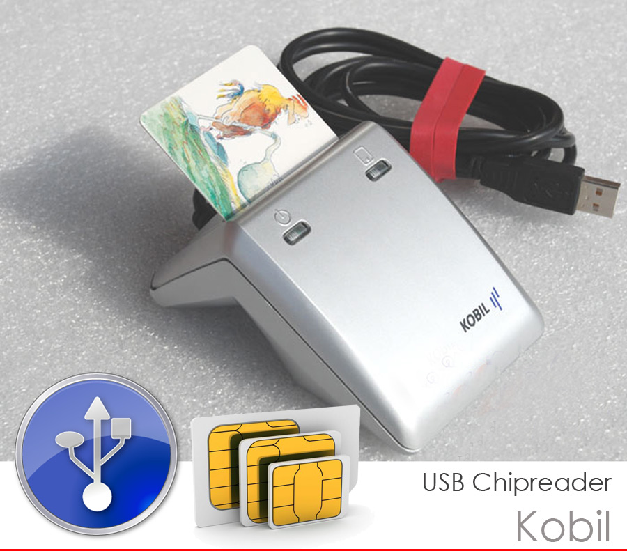Der Chipcardreader KAAN Base des deutschen Herstellers KOBIL ist ein stehender CCID-konformer Kartenleser mit USB-Anschluss für den Desktop-Einsatz (für PC oder Notebook). Der Leser verfügt über ein fest montiertes USB-Kabel und hat an der oberen Front zwei Stauts-LEDs. Der Karteneinschub liegt gut platziert dahinter. Der Hersteller bietet selbst für ausgefallene Systeme wie z.B. Solaris, Free BSD, OS/2 Warp 4 und Alpha OSF1 einen Treibersupport an, WinXP und Vista verstehen sich von selbst.