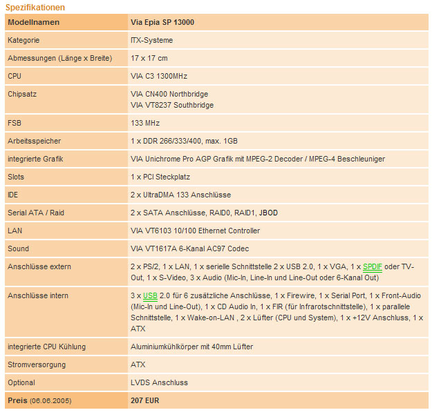 Dieses Motherboard mit der Bezeichnung SP13000 kommt von der Firma VIA, besitzt aktiv gekühlte 1300MHz VIA C3 CPU und gilt als Nachfolger der beliebten Epia M Serie.