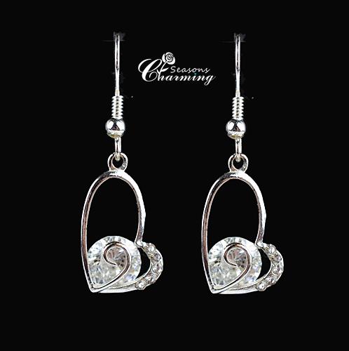 Designed 18K WG Plated Swarovski Element Crystal Long Drop Dangle Stud Earrings |
