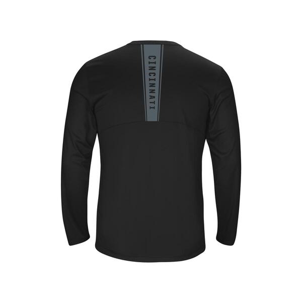Print: Screenprinted team name and logo on front; city name gel-printed vertically on back