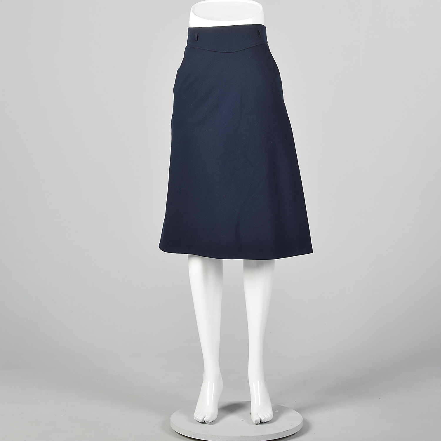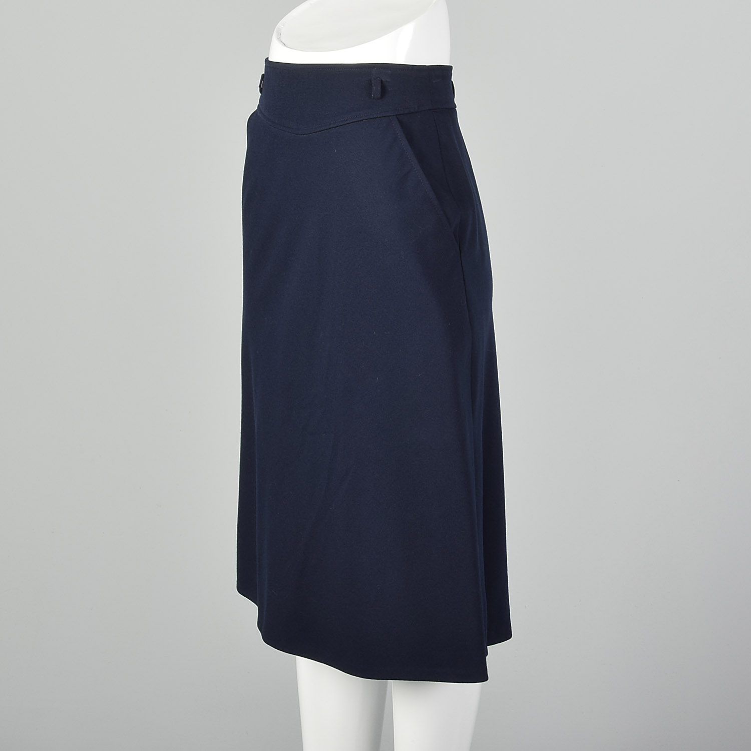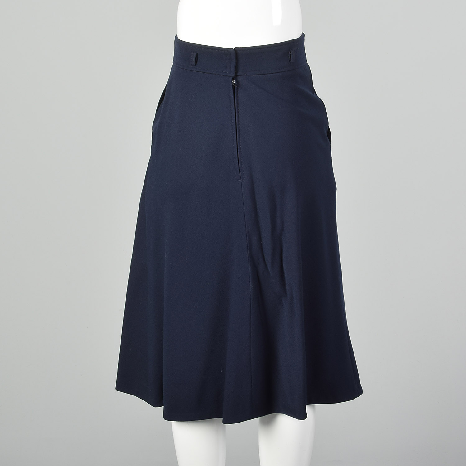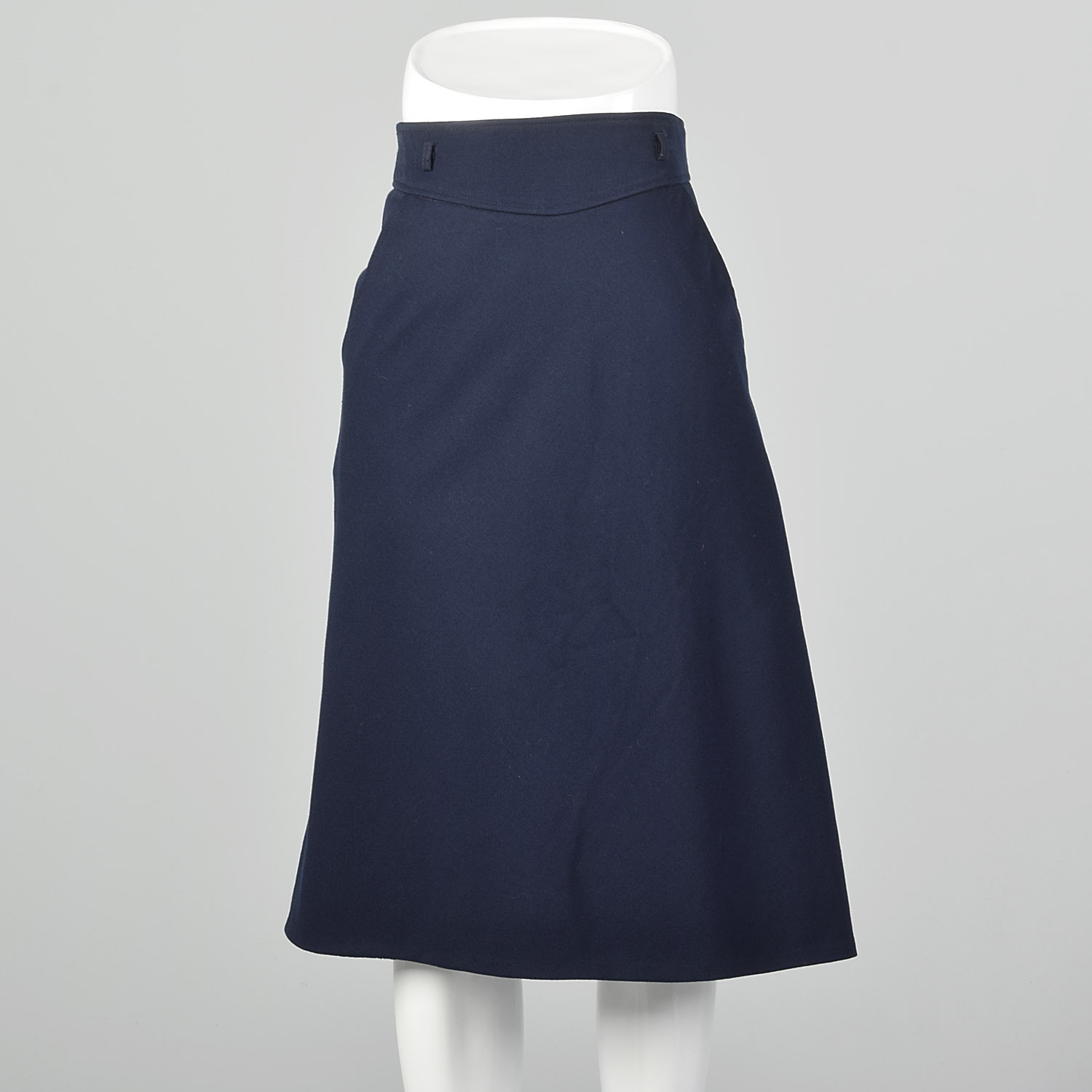 XS Anne Klein 1970s Skirt Navy Blue Wool Classic Straight Below the Knee 70s VTG