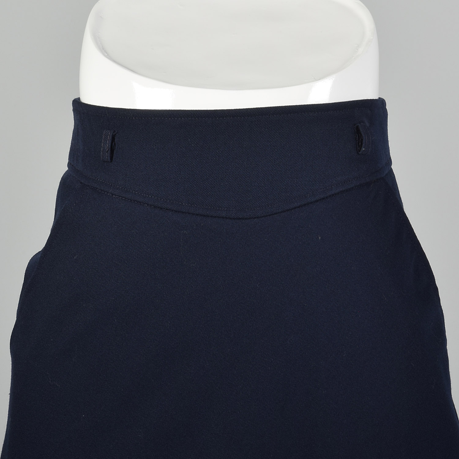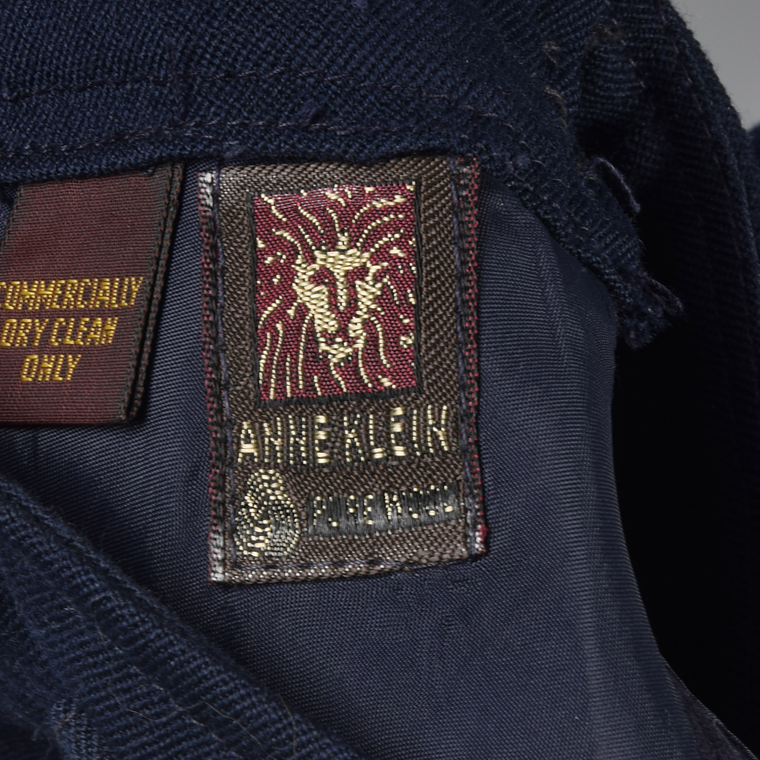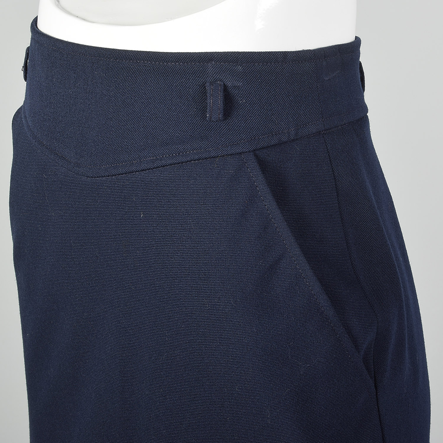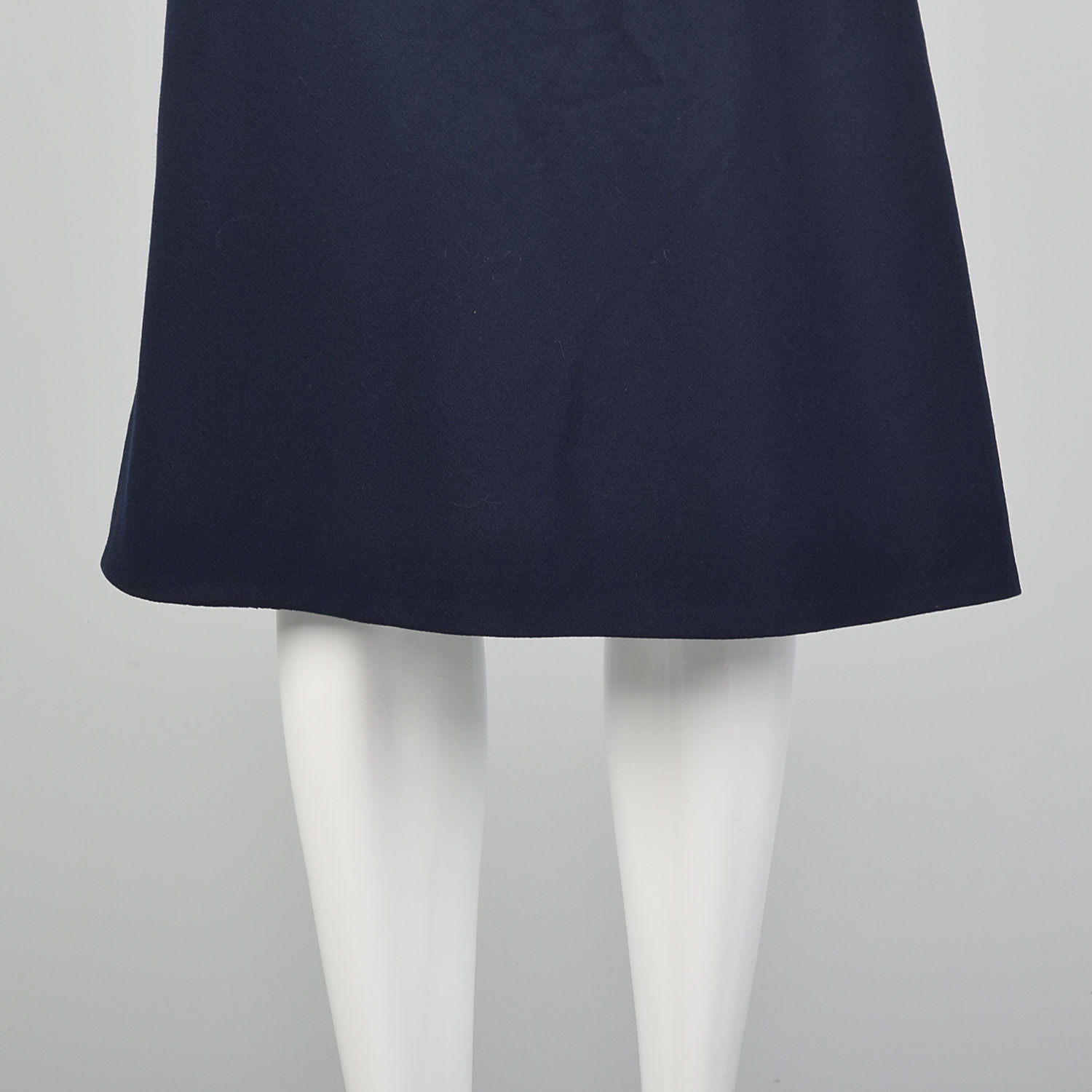 XS Anne Klein 1970s Skirt Navy Blue Wool Classic Straight Below the Knee 70s VTG