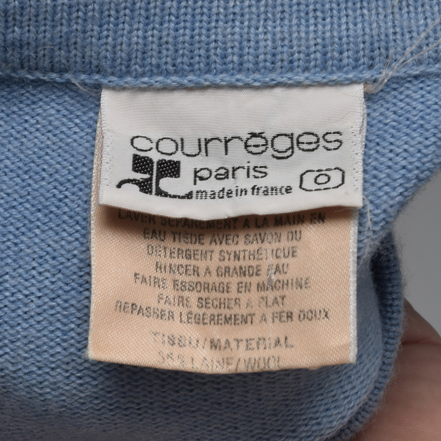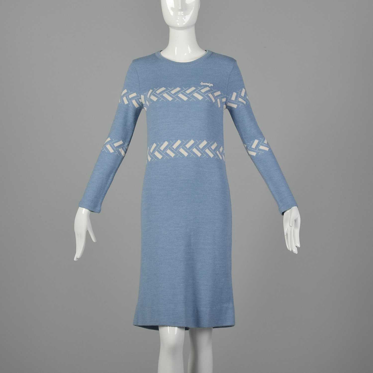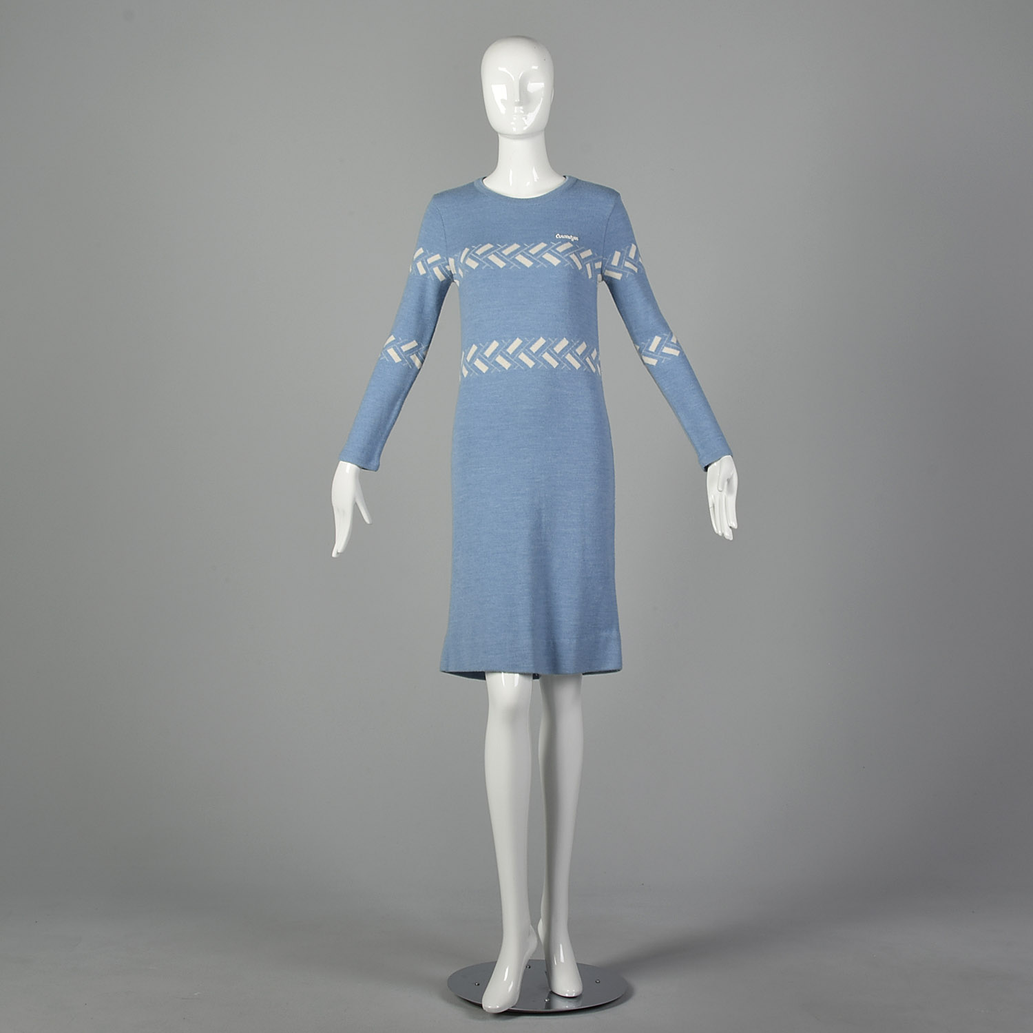 XS Courreges Blue Sweater Dress 1970s French Wool Knit Long Sleeves Winter VTG