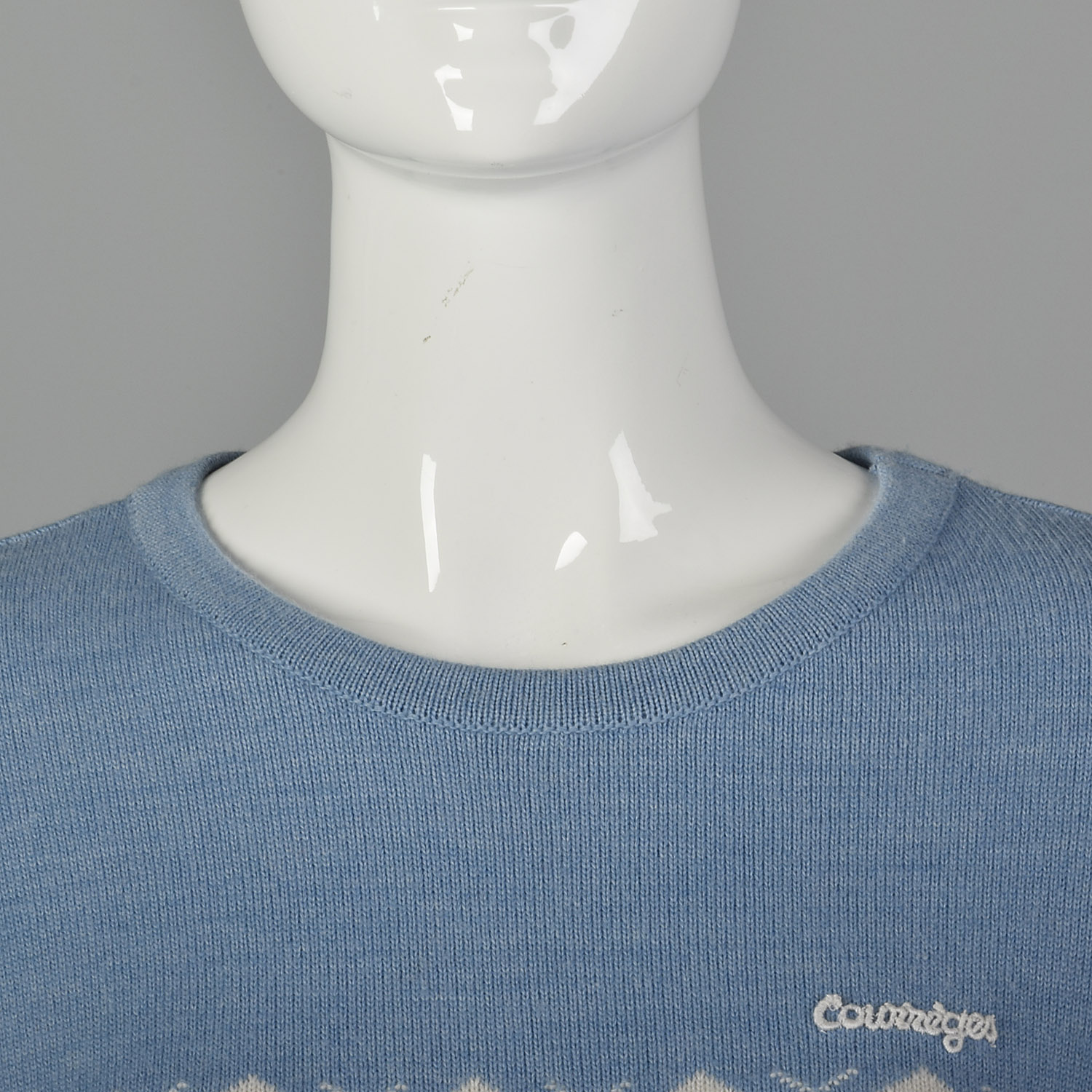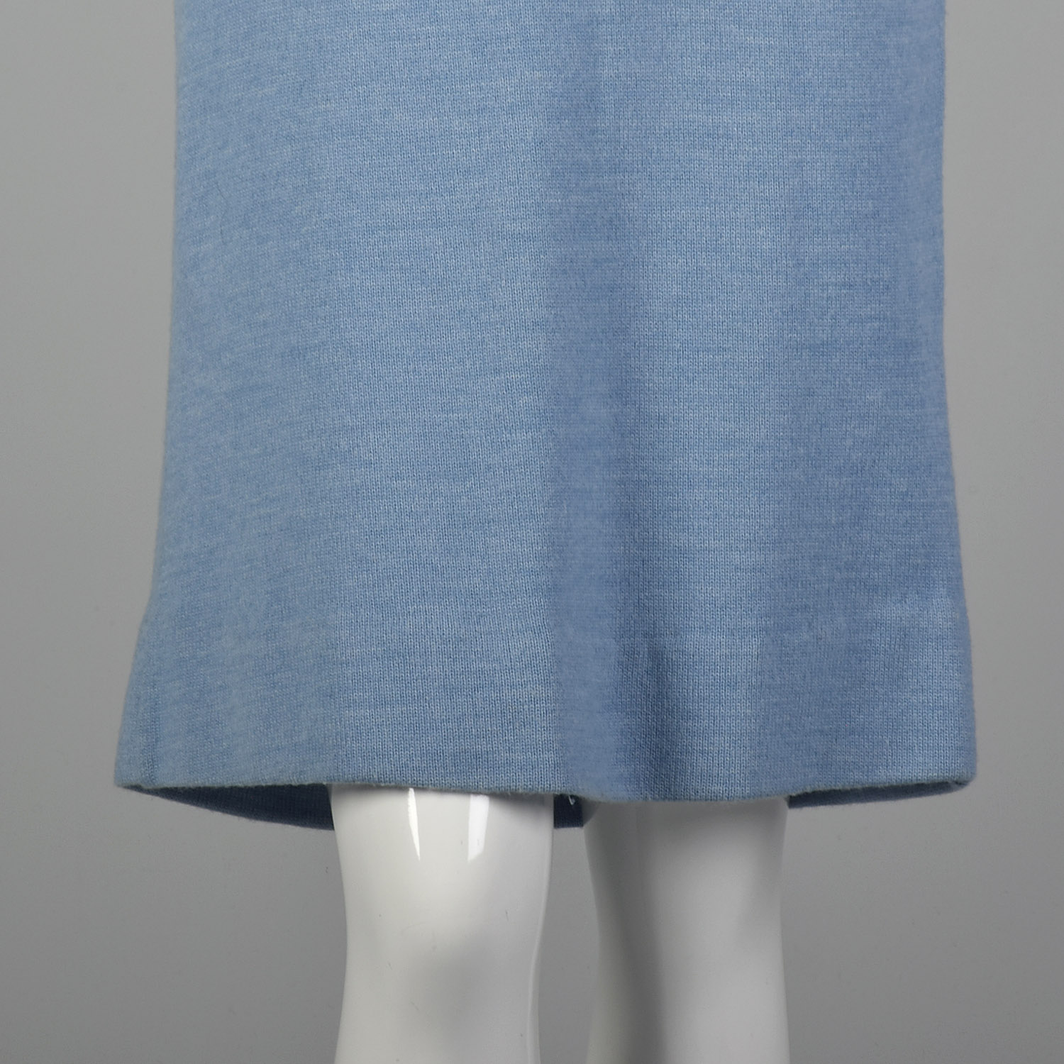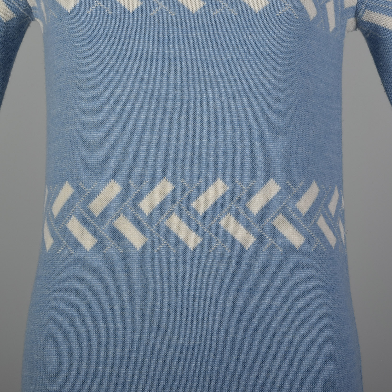 XS Courreges Blue Sweater Dress 1970s French Wool Knit Long Sleeves Winter VTG