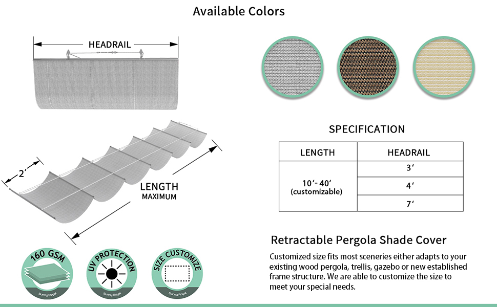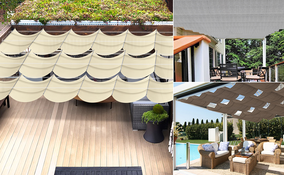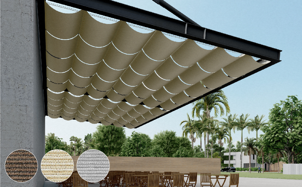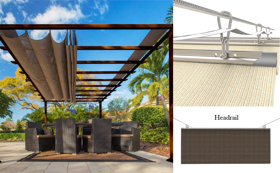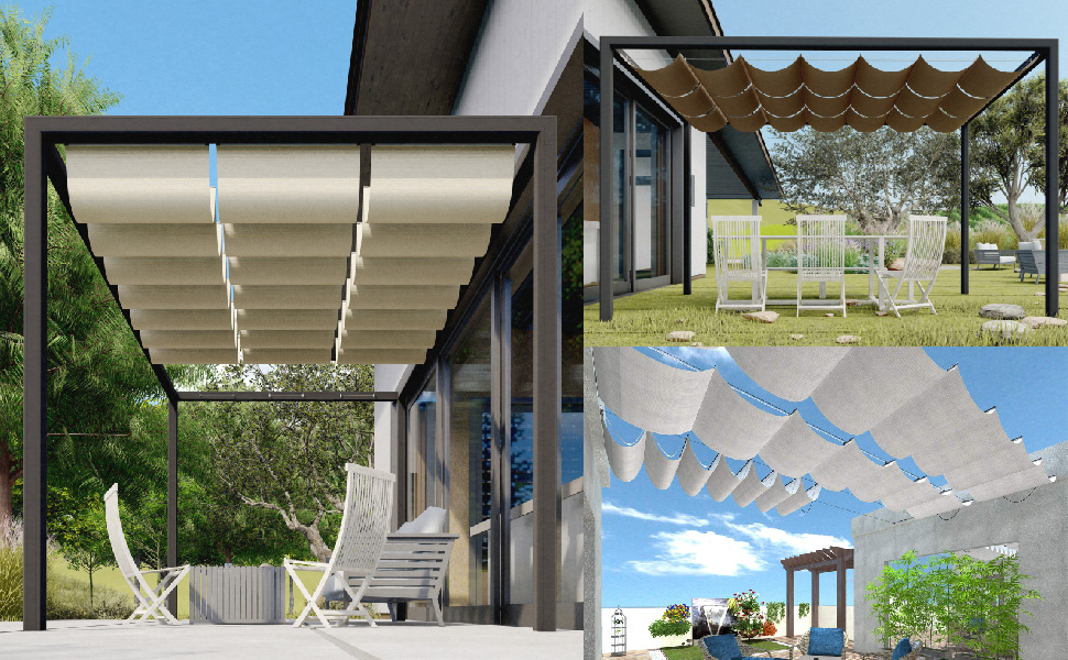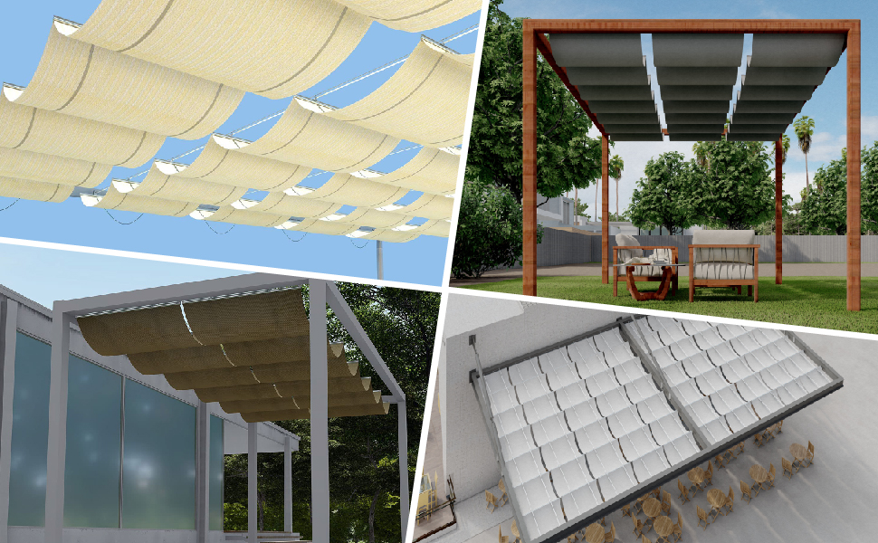 - APPLICANTION: Retractable pergola shade cover, retract or extend the shade cover whenever you want. Ideal for outdoor deck, pergola, backyard, patio, gazebo, residential and commercial applications. Flexible pergola shade solution. The provided retract pole allow you to retract or extend the shade to each side manually.