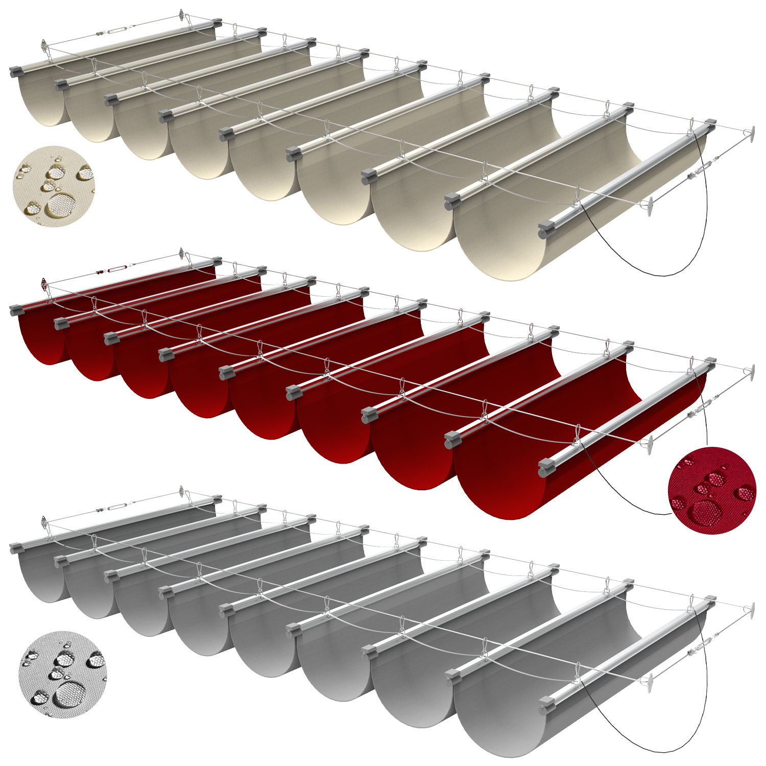 This new design retractable canopy fits outdoor space of most families, offices or public places. If reasonably designed, our retractable pergola canopy make the areas artistic and improve your life quality and taste. The detailed installation instructions help you solve all possible problems during installation. Canopies need disassembly due to season reason, and it is convenient. It can be washed with water.