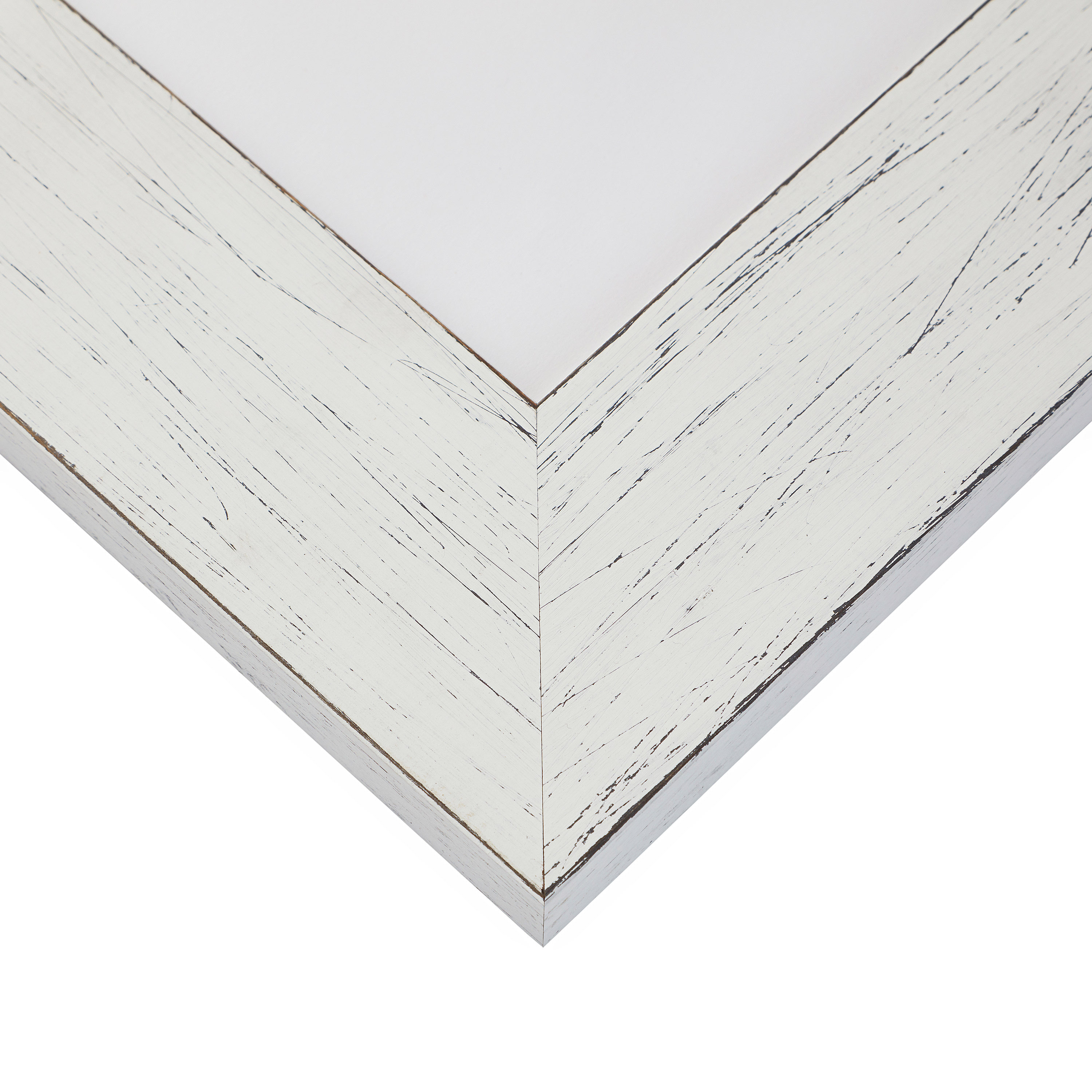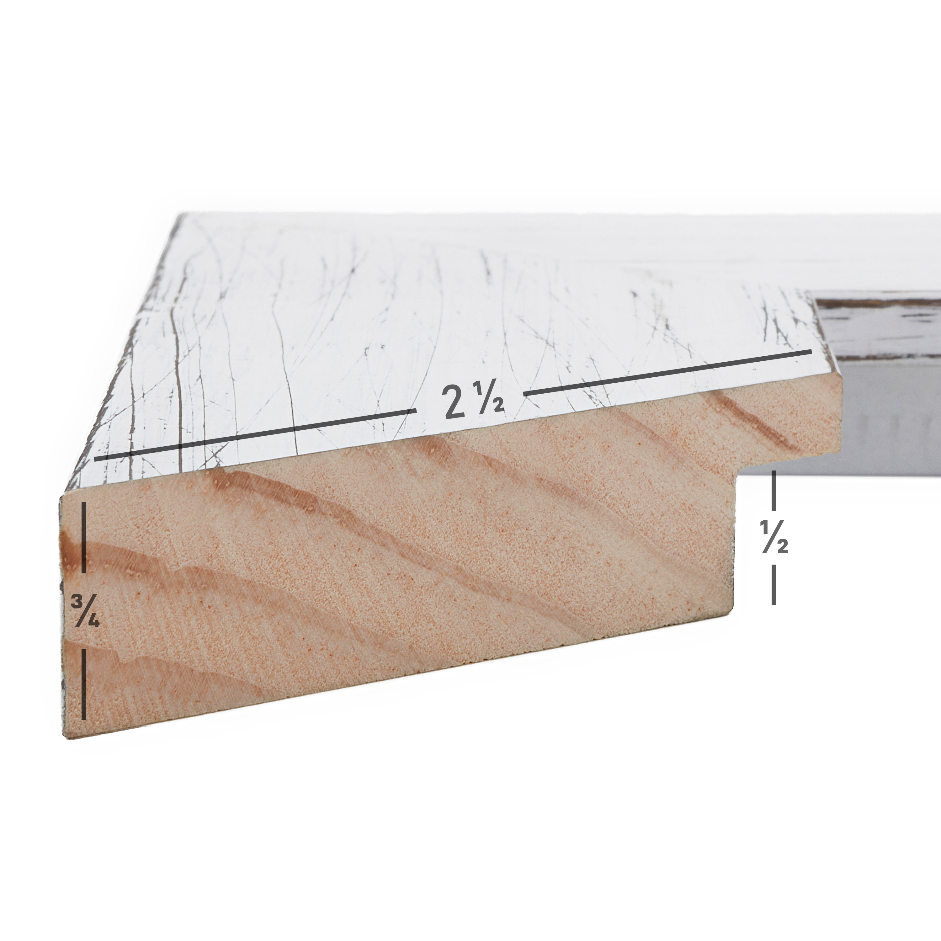 This beautiful rustic picture frame, sure to become an instant classic, is ideal for a wide range of decor styles from rustic to modern. The Jasper picture frame showcases uniquely worn surfaces, with visible wood grain alongside a lightly textured surface . This 2.5" wide moulding, with a rectangular profile, is constructed of poplar with a painted white finish. The Jasper Country Marshmallow White picture frame pairs well with any print and is a perfect fit for primitive decor.