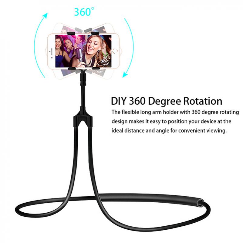 Lazy Neck Phone Holder Desktop Bed Stand Mount Gooseneck Flexible [Black]. Tired of holding my phone by hand for watching movie, my hand feel so sore! Always dropping my phone on my face when I'm lying on my bed is not a happy experience! This is a perfect product that can overcome these inconveniences and provide you with most comfortable to use phone. You can strap it around your neck, you can wrap it around your car or bicycle steering wheel, you can put it on the ground,bed, table or desk, you can do anything with it. Perfect for viewing phone & watching movie & watching music video & GPS & cook book in kitchen, bedroom, car, bicycle, gym, office and more.