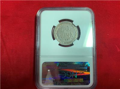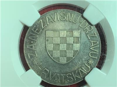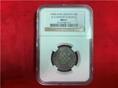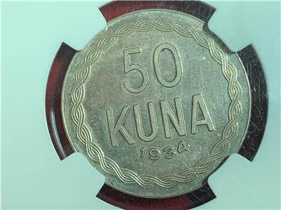 CROATIA 1934(1970) 50 KUNA SILVER FANTASY COINAGE X-2 NGC MS-61 UNC SCARCE TYPE
