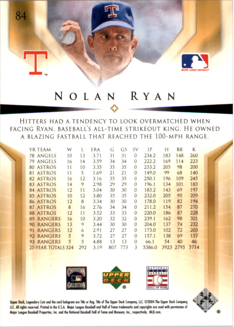 2004 Upper Deck SP Legendary Cuts #84 Nolan Ryan Texas Rangers