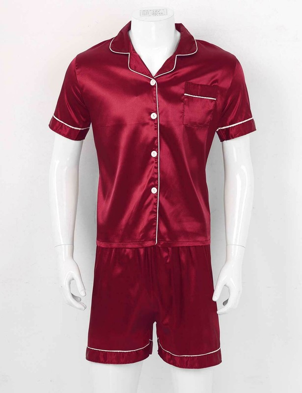 Men’s silky satin pajamas set luxury sleepwear loungewear, solid color, fashion and classic.