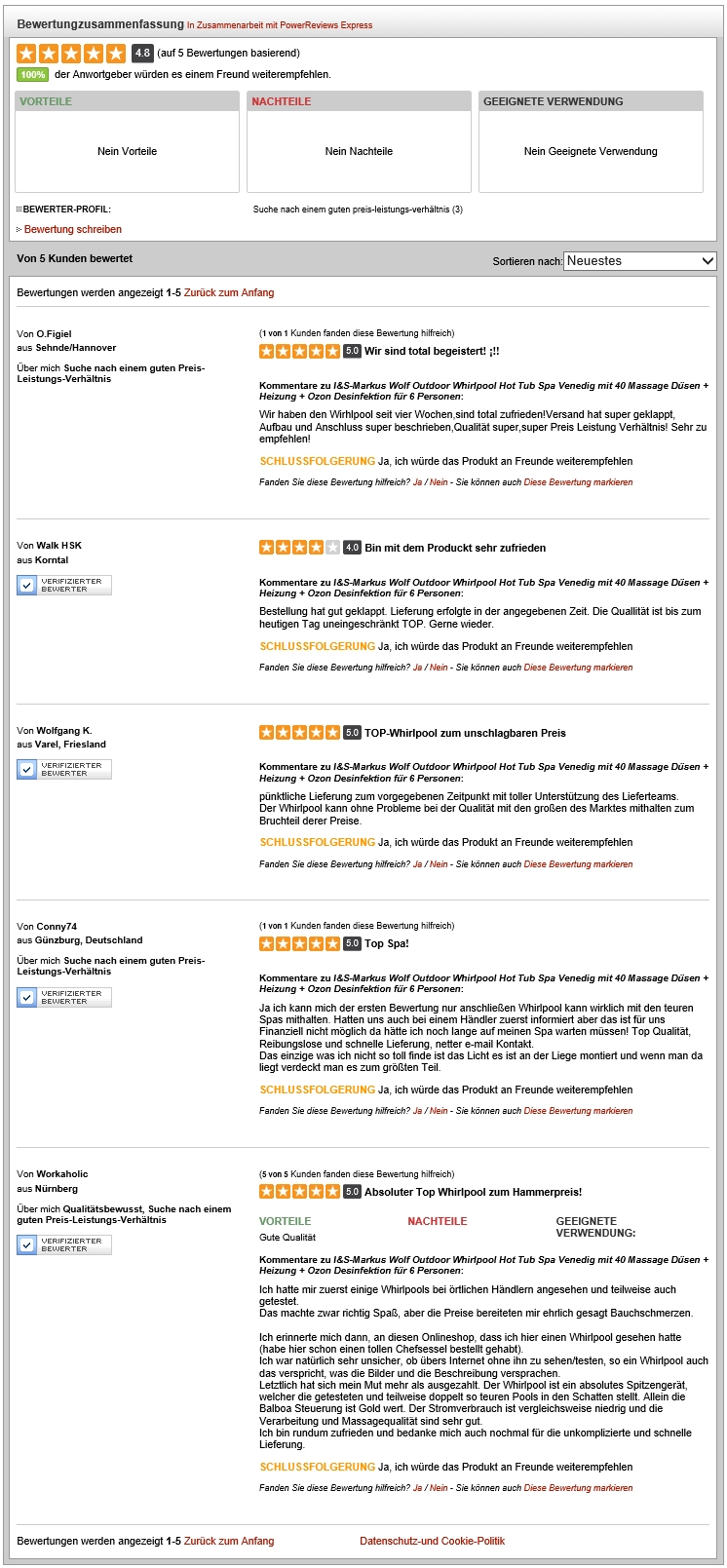 Das sagen Kunden die einen Whirlpool von uns bereits besitzen: