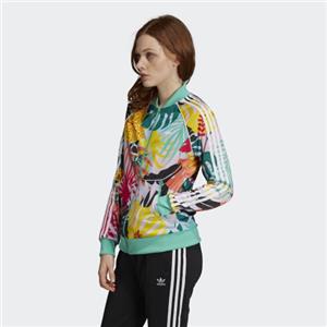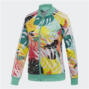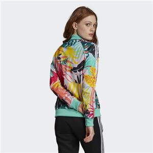 Good vibes and sunny days. This track jacket is covered in a vivid print inspired by tropical foliage. It's made of recycled polyester tricot with a smooth feel.